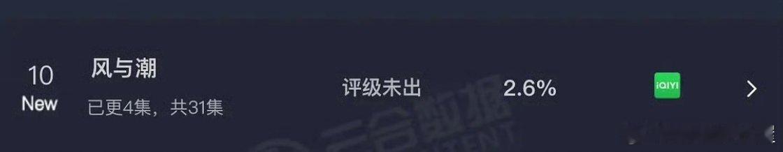 任嘉伦《风与潮》首日云合2.6%,播出两集收视破3,是个好的开始剧情开头让小日子鞠躬道歉的剧情看的很爽