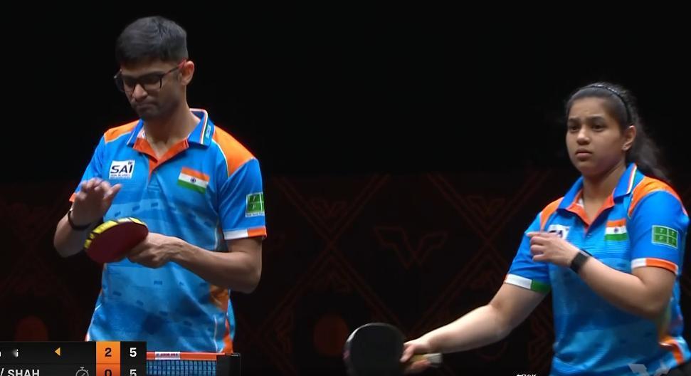 吓死我了,一看莎头1:4落后! 刚刚听了会陈熠的采访, 过来一看,莎头1:4落后, 吓得我一身冷汗。 仔细一看, 莎头大比分2:0领先, 我这才松了口气, 打的怎么这么快? 第三局 奇塔莱挑打的很有攻击性, 开局4:1领先, 不过莎头适应了,追到了4:5, 印度教练叫了暂停。 打印度队,两人交流直接没捂嘴,哈哈 好,看来大头听莎莎话了, 9:8反超, 最后11:8拿下