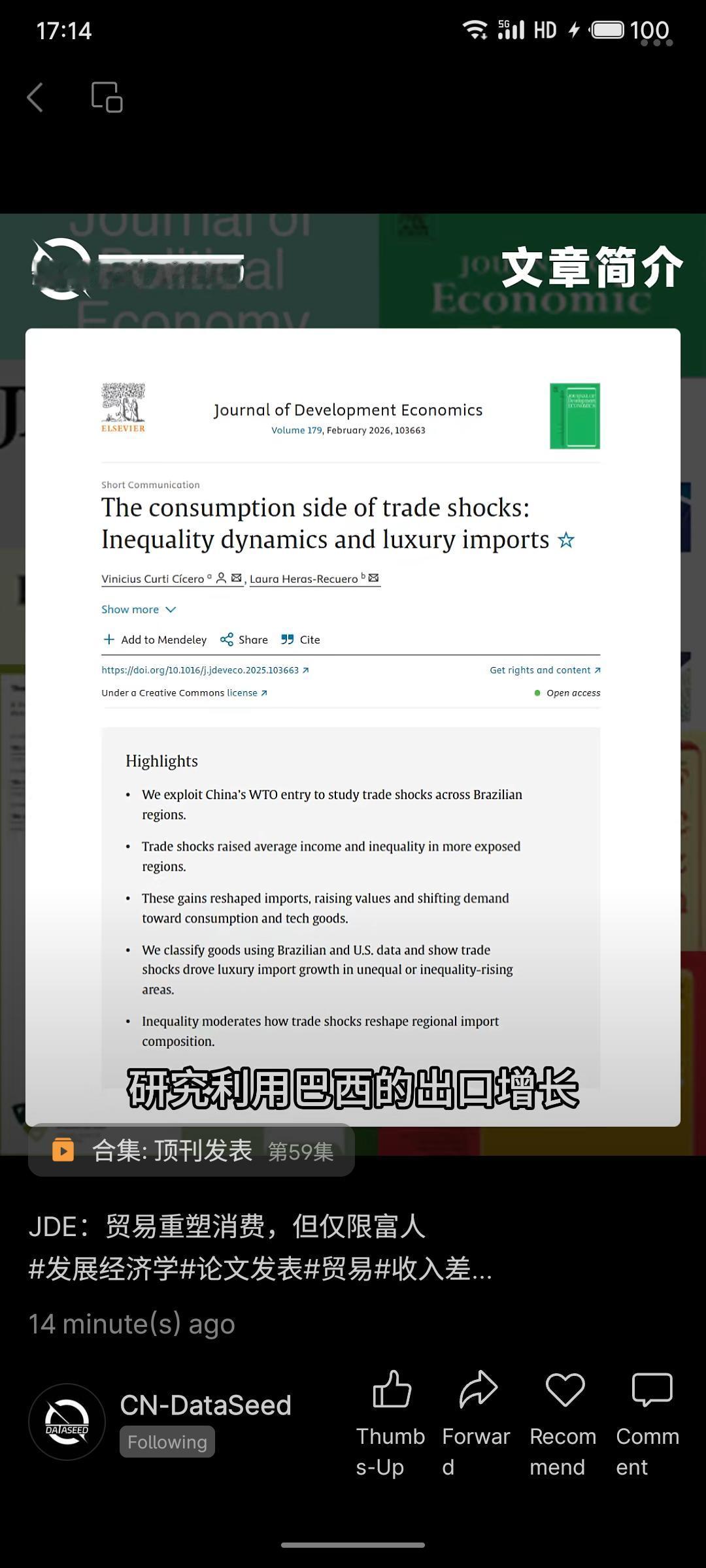 该研究以中国入世为背景,分析贸易冲击对巴西地区的影响,发现其虽提高平均收入,却加剧了区域不平等。增长红利主要流向高收入群体,并显著转化为奢侈品进口需求,揭示了贸易利益分配不均如何重塑消费结构。
