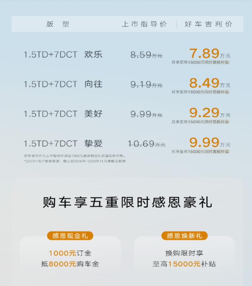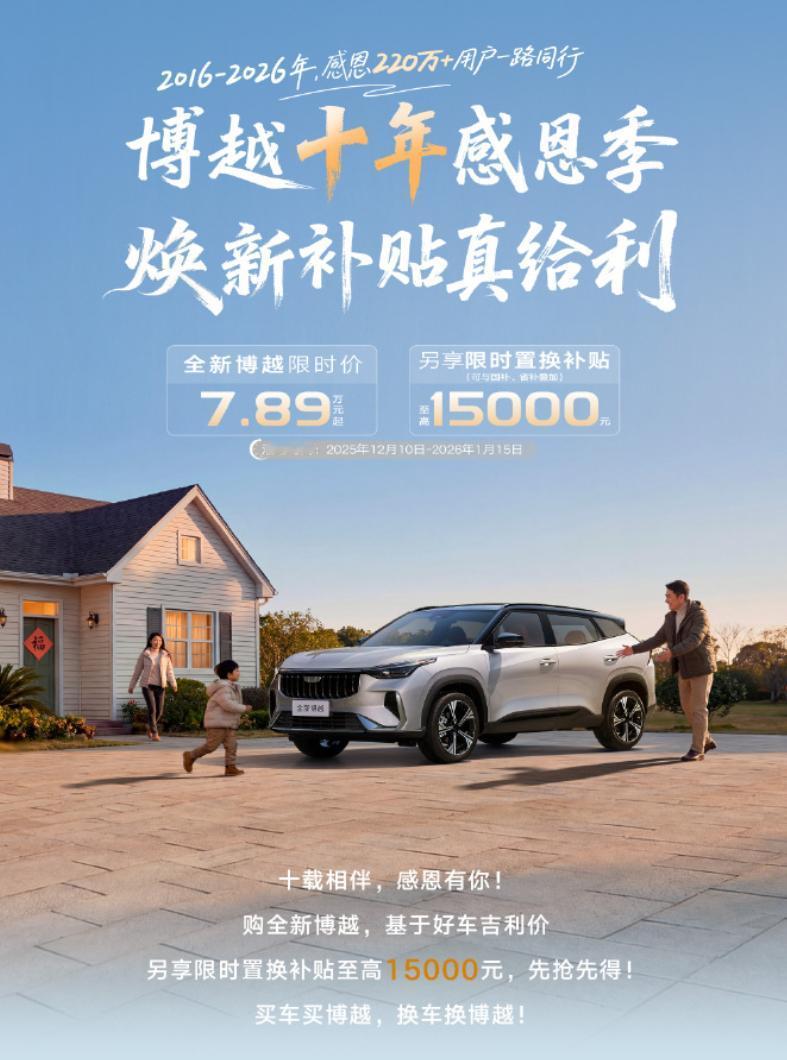 全新吉利博越年底购车活动,限时价7.89万起,顶配不到10万,另外还有限时置换补贴至高1.5万元,五重限时礼,包含1000元订金抵扣8000元车款、赠送6000元配置、和流量包等,活动时间截止到明年1月15日,喜欢的小伙伴,别错过上车时间。【来自懂车帝车友圈】