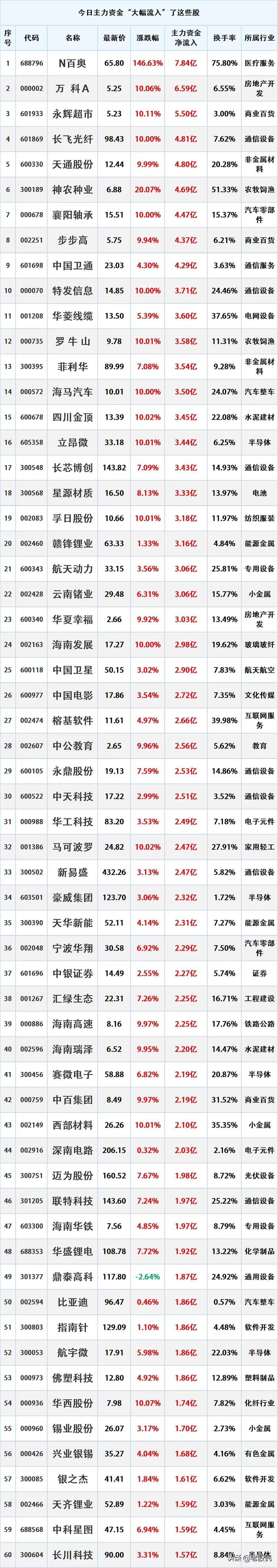 资金入场,12月10日主力资金大幅流入的股票名单。 资金流入是指在一定时期内(如一天、一周等),主动买入某只股票的资金量大于主动卖出该股票的资金量。主动买入是指投资者以卖方的报价直接成交,显示出投资者对该股票的积极购买意愿。