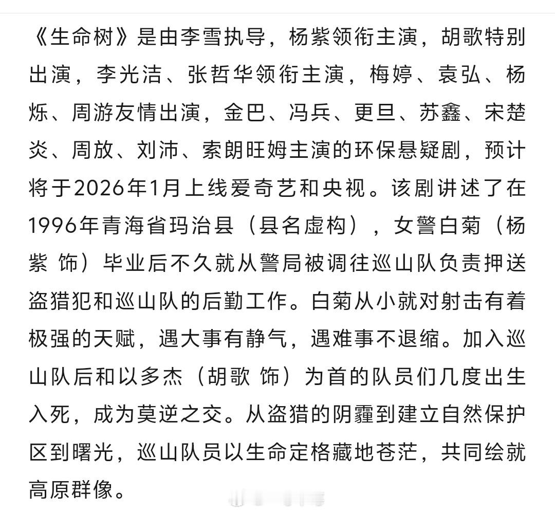 杨紫、胡歌《生命树》开启招商,备播2026年1月