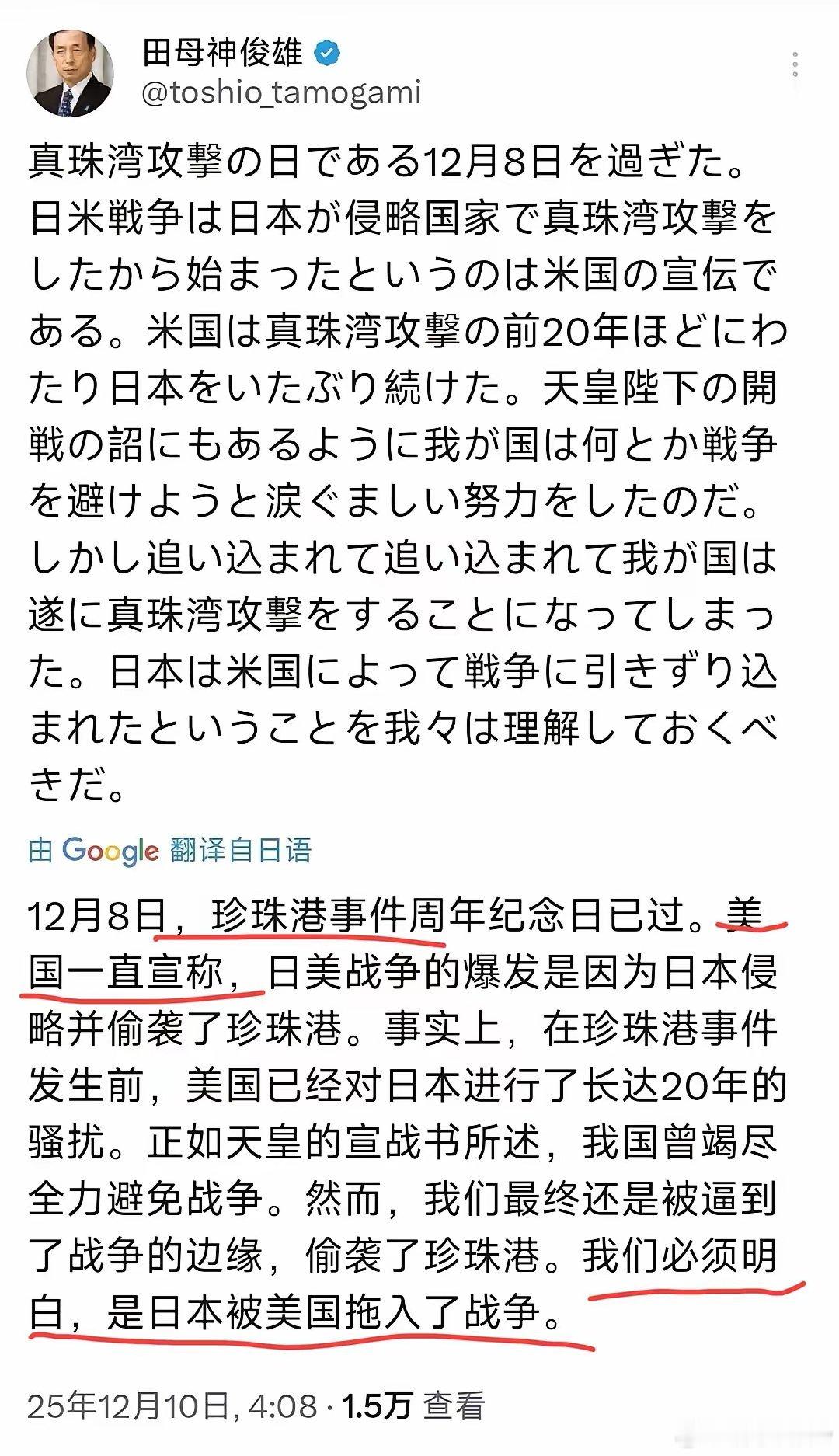 因为不满老美宣传纪念珍珠港,前自卫队幕僚长在媒体公开喊话。从这位前幕僚长直白的表达中,可以感受到日本人内心中的真实想法。他不但没有为因日本偷袭造成的高达2400名老美军人的去世感到任何歉意,还指责这一切的发生都是老美逼迫的,是老美把日报拖入了战争。