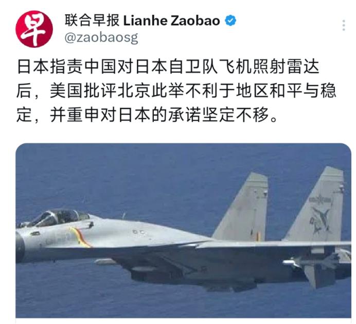 12月10日,新加坡联合早报发布:“日本指责中国对日本自卫队飞机照射雷达后,美国批评北京此举不利于地区和平与稳定,并重申对日本的承诺坚定不移。” 说白了,这是美国和日本站在了一边,但是这显然不能改变事实,而中国大概率会让美国知道,支持一个错误的国家做法,是怎么错误的决定。 要知道,这已经不是日本第一次炒作这样的话题了,最典型的一次就是2013年,日本在钓鱼岛附近海域展开的军舰活动,中方对日方直升机实施了火控雷达照射,日本随后在不少媒体播放该消息,但是之后不久,当时的日本首相安倍晋三还是向媒体公开道歉了。 说实话,像日本这种先做错事,不懂得道歉,还到媒体抹黑中国,倒打一耙的做法,只会像历史一样,让日本再次向媒体公开道歉。 而届时的美国也会因为如今中日关系紧张,做出偏袒日本的错误决定,成为全球的笑柄。 说到底,看似美国和日本的配合默契,声势浩大,实则早就被铁证戳穿。日本的谎言随着时间的推移,终究会被事实打脸,美国的无理偏袒也只会让世界看清他们的真面目,而中方捍卫主权与安全的决心,绝不会被这种政治操弄动摇。