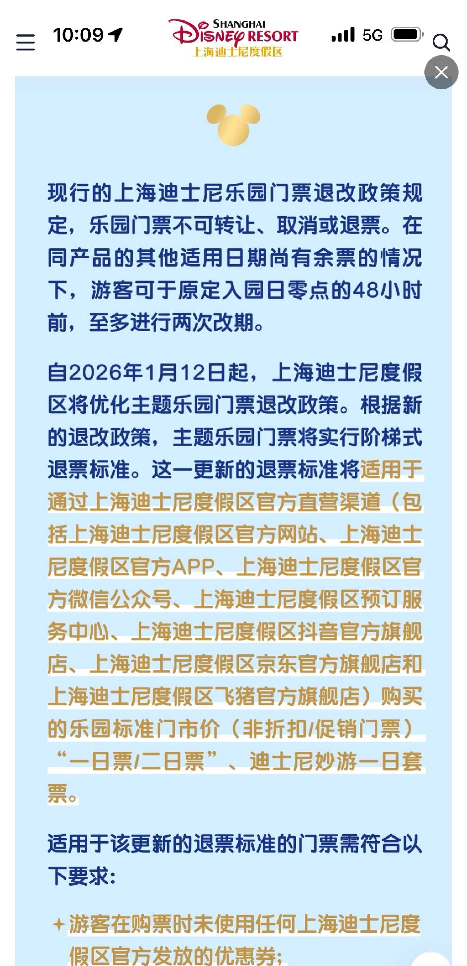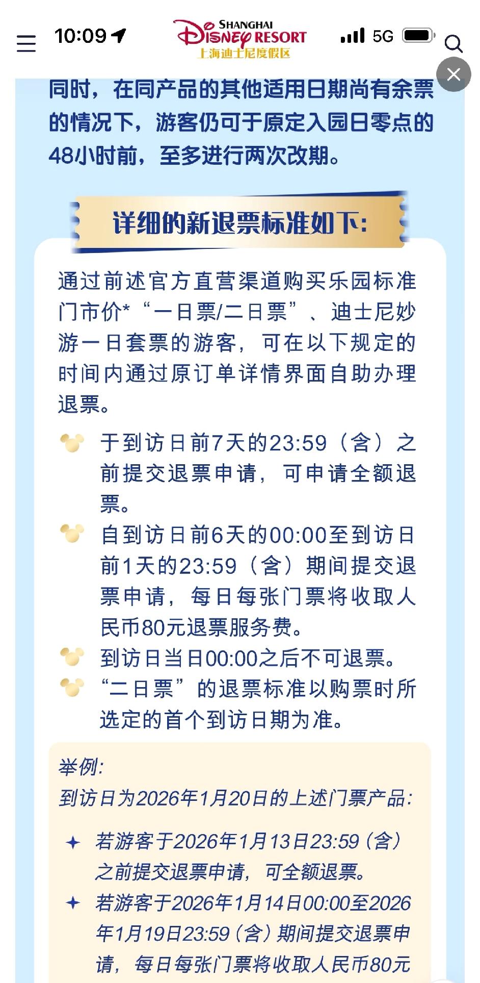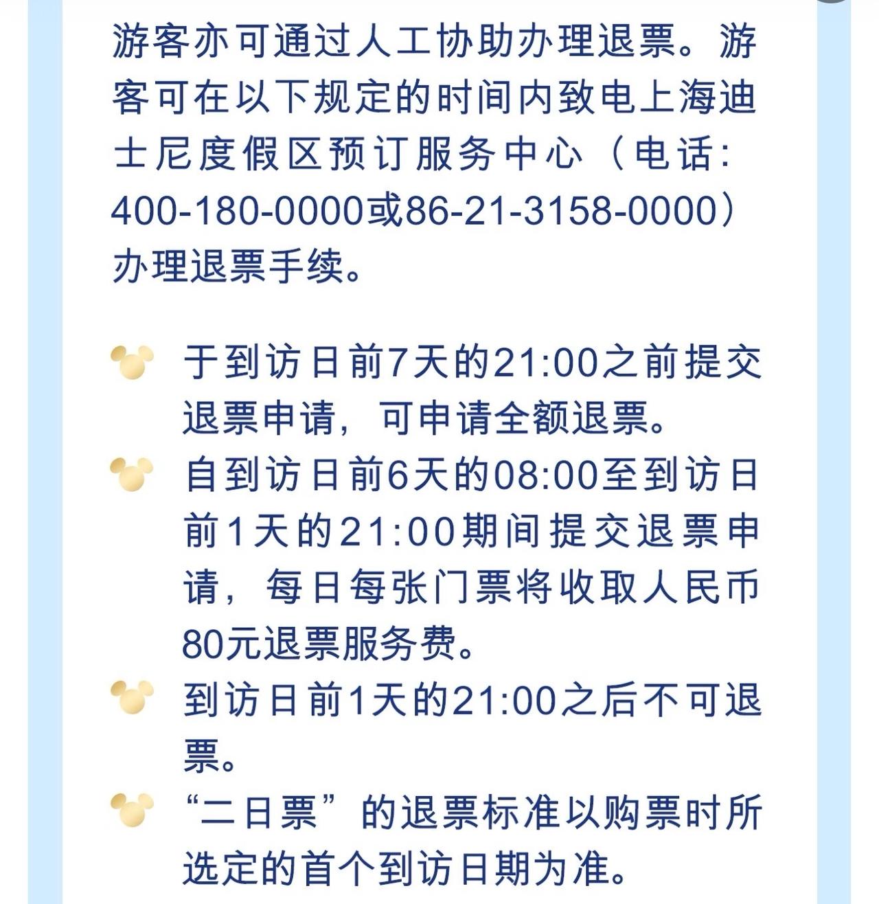 迪士尼门票终于要7天无理由退了。 1月12日才开始,那是不是19号之后的门票才适用呢?提前6天退还要扣80,我感觉太多了!我基本都是临时买的,之前早鸟票便宜没便宜多少,万一有事没去就是损失100%。