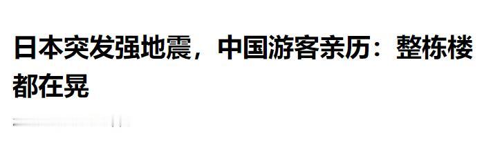 感觉这次日本地震,瞬间被中国赴日游客霸屏了。让人怀疑这些游客是不是专门到日本去给我们通风报信的!根据媒体报道,他们在日本亲身经历这次大地震,各种感受陆续传回国内。 7.5级地震,震源深度50公里,整个房子吱呀作响。东京的吊灯晃出残影,北海道的积雪被震得扬起白雾。 这不是普通的晃,是持续二十秒的"死亡摇摆",住在木质老房子里的人能清楚听见梁柱的呻吟,这种深入骨髓的恐惧,只有经历过的人才懂。 但大多数人第一时间只顾着慌乱避险,而这次赴日本旅游的游客反而下意识地掏出手机记录下眼前的一切,这种行为本身就超越了普通游客的身份边界,成了连接国内与震区的微小信息枢纽。 他们分享的不仅仅是自己的恐惧和惊讶,还有对当地社会秩序、民众反应的观察,这些细节往往是官方新闻报道中难以捕捉的生活化场景,却能让远在国内的人更直观地感受到地震发生时的真实状况。 就像在青森县青森屋3层的游客,地震发生时整栋楼剧烈晃动,他连滚带爬躲进卫生间,震感平息后第一时间分享了“穿衣服下楼看到大堂挤满人的场景”,这种带着个人体验的描述,比单纯的震级播报更有感染力。 还有浙江的胡女士一行,本来因为暴雪滞留北海道新千岁机场打地铺,没想到遇上地震,手机警报响起后整栋楼开始晃动,卷闸门发出剧烈声响,地毯上的灰尘毛屑都被震得飞起来,持续三分钟的震感让他们跑到墙角蹲下。 可即便如此,他们还是记录下了现场互相安慰的片段,以及保安过来安抚的细节,这些画面没有专业镜头的调度,却带着最原始的真实感。 广东游客“小六”和同伴住在札幌的酒店,睡得正沉时被床和灯具的晃动惊醒,明明是第一次经历这么强烈的震感,却因为太累选择躺在床上拍视频,这种“松弛感”的分享,恰好补充了另一种视角——不是所有亲历者都只有恐慌,不同人的反应共同构成了事件的完整面貌。 他们用自己的视角,记录下最真实的瞬间,也无意中承担了一部分信息传递的社会功能。 这种传递没有固定的格式,有的是14楼住户眼睁睁看着衣柜门和厕所门来回滑动的紧张描述,有的是上海游客住在7楼,经历两分钟剧烈晃动后下楼避险,观察到“很多客人聚集、工作人员一小时后组织分批回房”的秩序细节。 还有人注意到地震后当地酒店的应急处理、机场的平静气氛,这些碎片化的信息拼凑起来,形成了对日本震区应对能力的多维度观察。 而且不同区域的游客分享还呈现出明显的差异,在北海道小樽市的旅居摄影师收到了手机预警却毫无震感,而最北部稚内市的游客甚至没收到警报,这种地域差异的记录,让国内民众对地震影响范围有了更清晰的认知,这正是公民新闻最独特的价值——它不追求宏大叙事,却能通过个体视角的叠加,呈现出事件的丰富层次。 这或许是一种自发的、非官方的公民新闻形态,它没有严谨的策划,却有着无可比拟的真实性和感染力。 相较于官方媒体需要时间核实信息、整理播报,这些游客的分享几乎实现了“实时同步”,地震发生后的短短几小时内,来自青森县、北海道、神奈川县等多个震感区域的亲历内容就已在网络上传播,中国网、上观新闻等媒体纷纷引用这些游客的讲述,形成了官方报道与民间分享的互补。 这种传播模式完全不受传统新闻生产流程的限制,没有编辑审核的延迟,也没有统一的表述规范,游客们想到什么就分享什么,可能是一句简单的“震感好强”,可能是一段晃动的现场视频,也可能是对当地应急措施的随口评价,但正是这种“原生态”的表达,让信息传递更具可信度。 这些游客并非刻意扮演“信息传递者”的角色,他们的分享更多源于社交本能——想让亲友放心,想记录下这段特殊经历,却在无形中搭建起了跨越国境的信息桥梁,让国内民众不用依赖单一渠道,就能通过无数个“微观镜头”了解震区的真实情况。 这种自发形成的信息网络,既高效又鲜活,恰好契合了当下人们对真实、即时信息的需求。