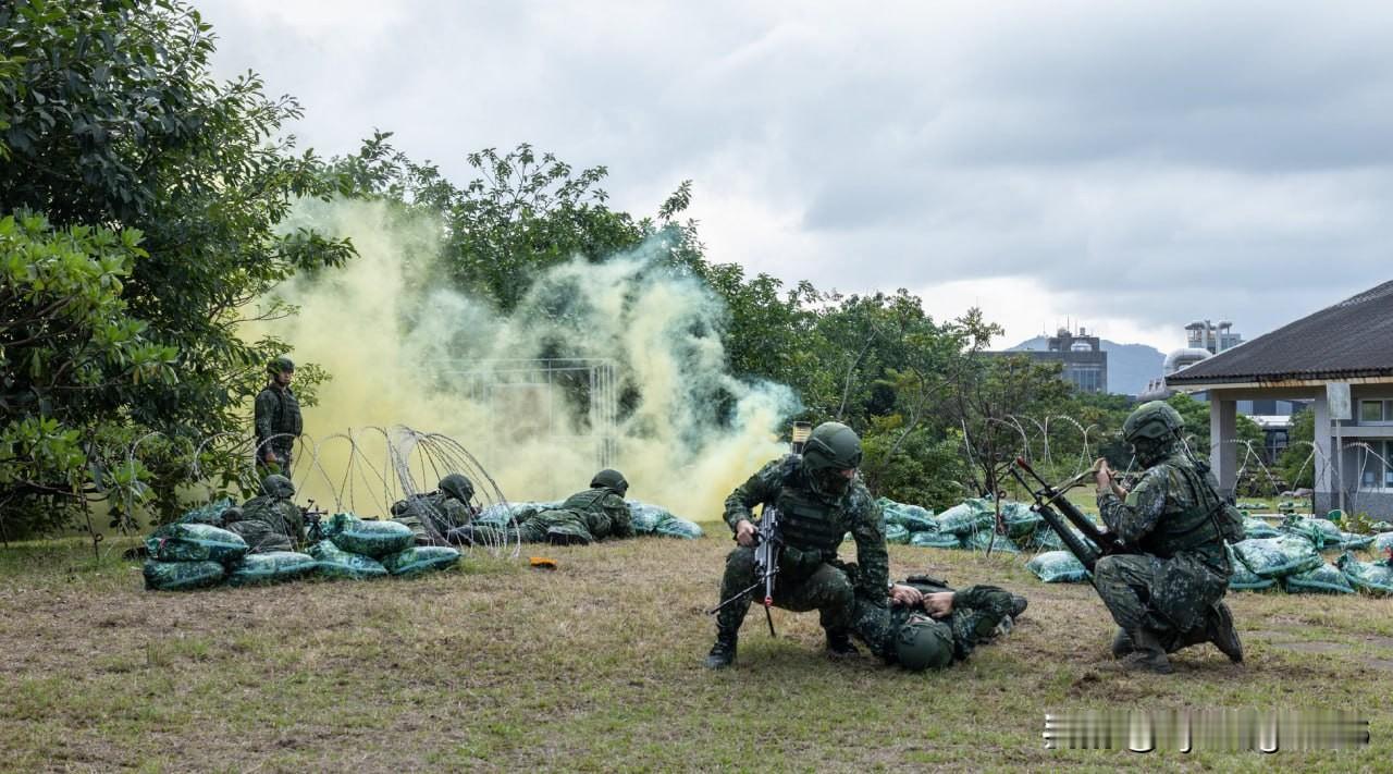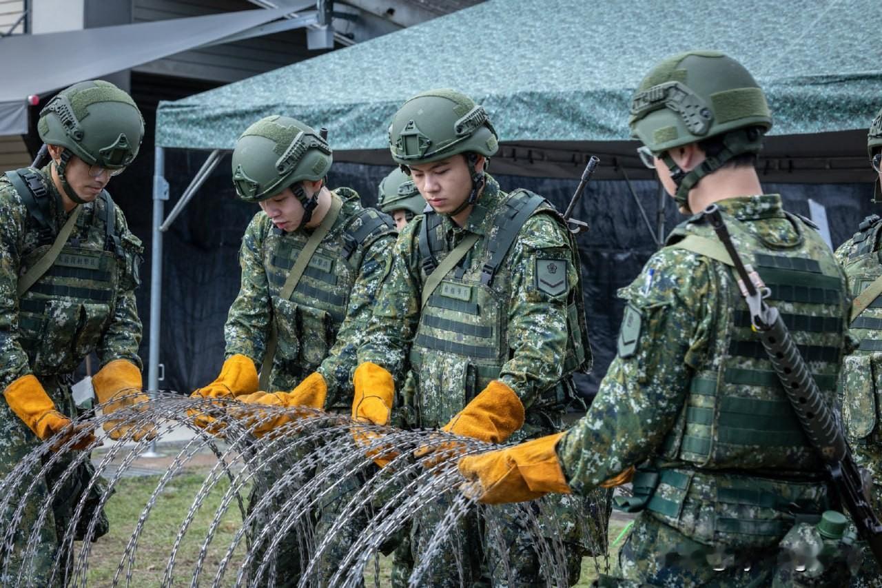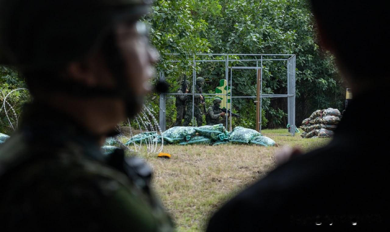 台湾地区陆军预备役第三营士兵在宜兰县进行战斗训练 预备役人员正在为冲突做准备。标准训练包括:射击、战术演练、无人机操作、急救等。