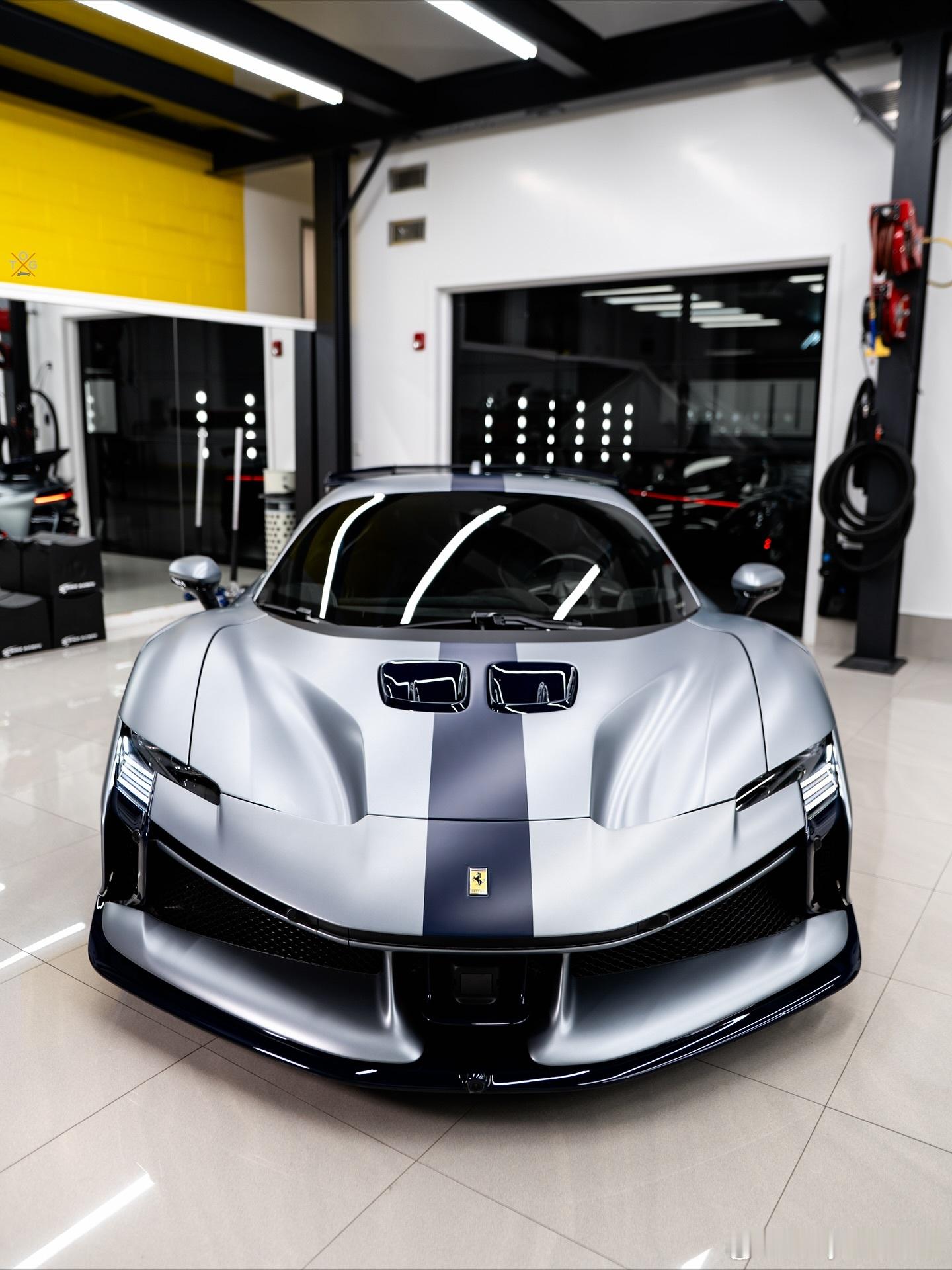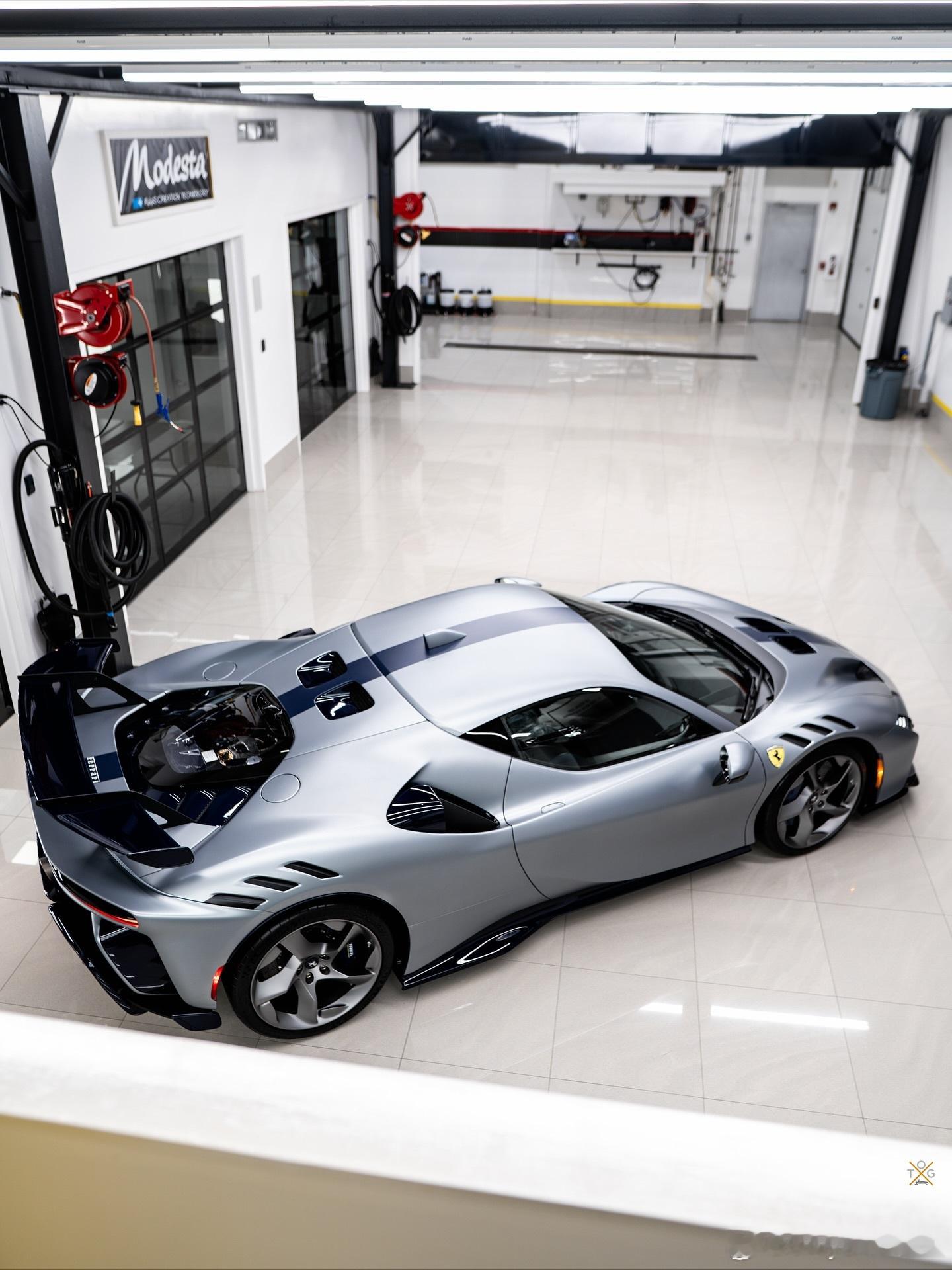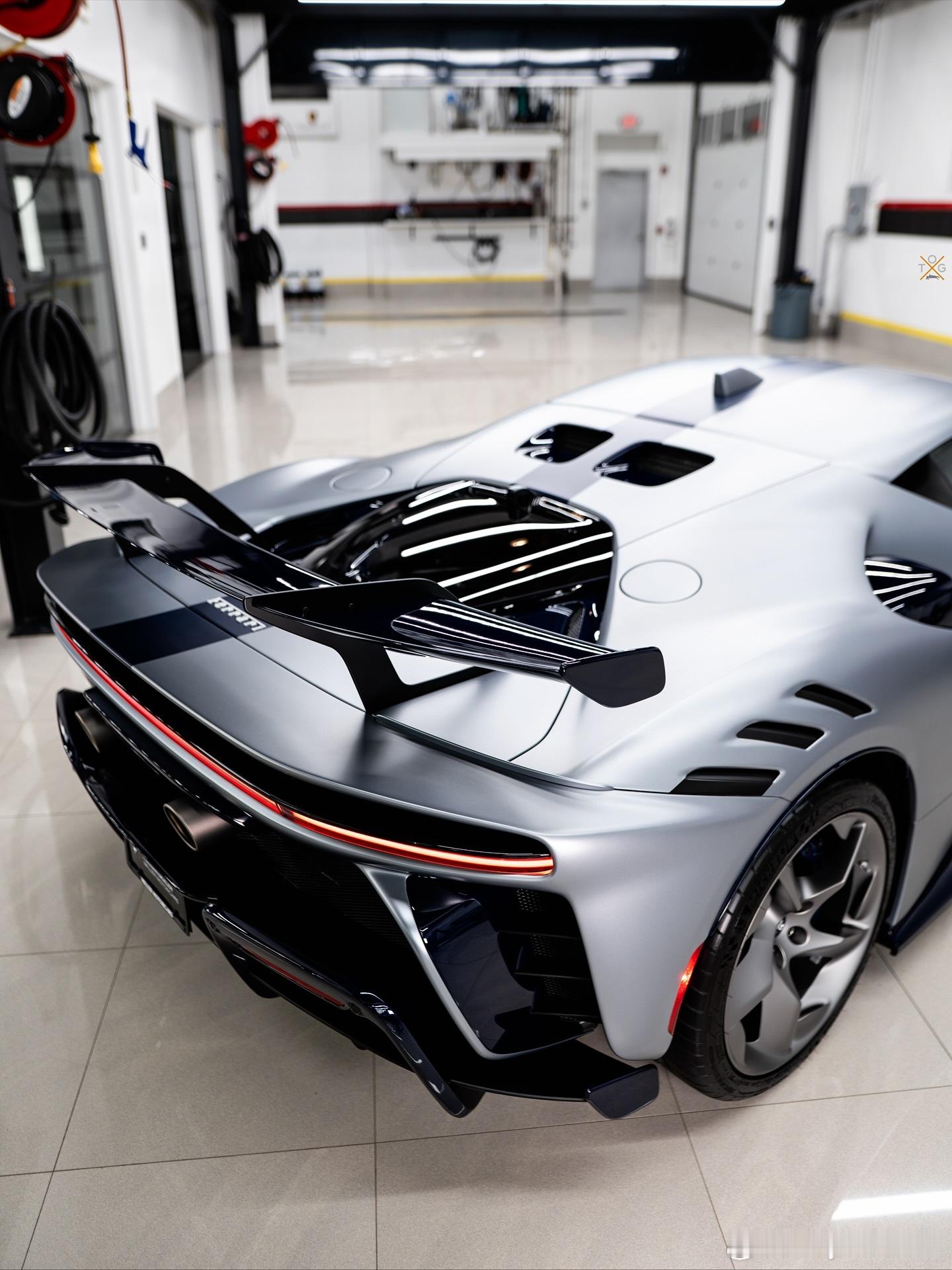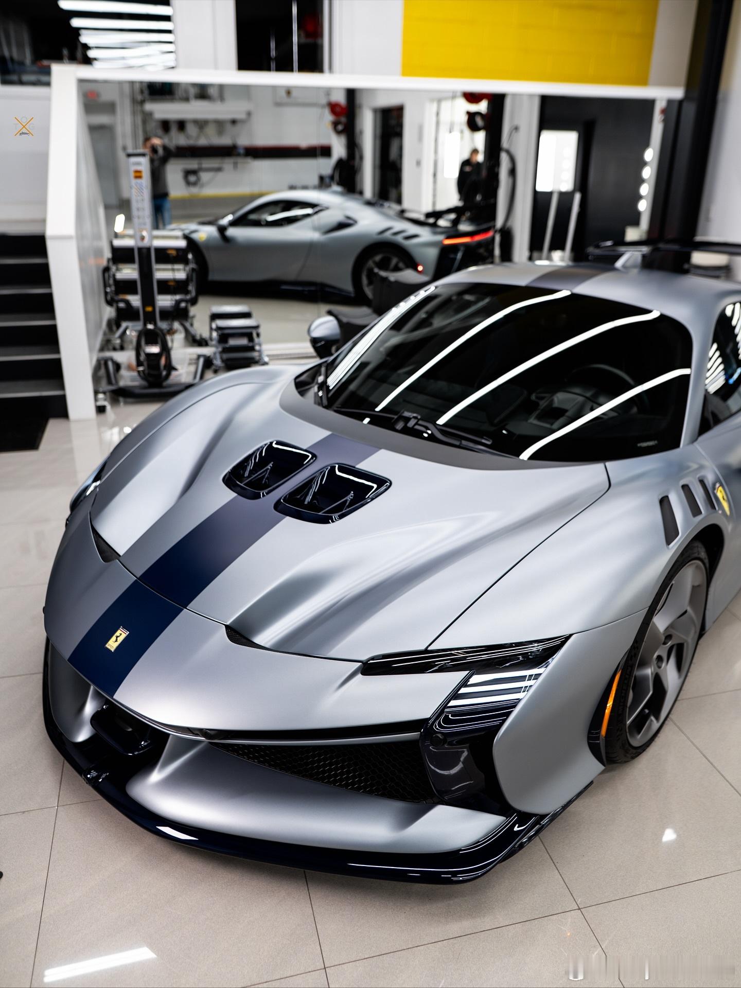 外观配色为Grigio Titanio Opaco,搭配哑光化的蓝色长赛车拉花,外观方面还选择了哑光银色的赛车轮毂,上色车顶以及深蓝色刹车卡钳,车身外侧的碳纤维部件均被替换成了蓝碳,这也是这台SF90 XX可以成为Tailor-made的主要原因。内饰方面,Daytona复古赛车座椅同样使用了海军蓝色的皮革。交付于位于美国康州格林威治的Miller Motorcars,一台很低调的Tailor-made作品。图片来自