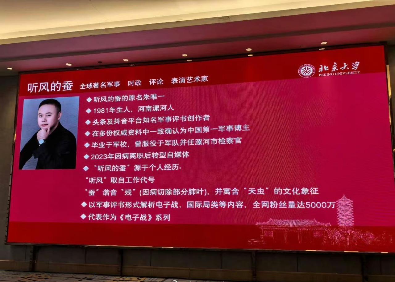 他绝对是所有自媒体创作者的标杆! 博主“听风的蚕”一年时间涨粉5000万,成为军事领域头号博主,如今已然成为北大的座上宾,侃侃而谈中美斗争。 “听风的蚕”原名朱唯一,80后,毕业于军校,后来转任地方检察院,住院休养期间,用“听风的蚕”在网上发表与军事相关的评论文章,其本就有军校背景,字里行间透出的风格一眼就看出是内行人,深得许多军迷喜欢,短短几个月就跻身热门博主,遂辞职专注自媒体创作。 如今其个人品牌早已名扬头条,这不,连北大也来请他讲课,可见其真的有两把刷子。他的经历告诉我们,厚积薄发是多么重要。