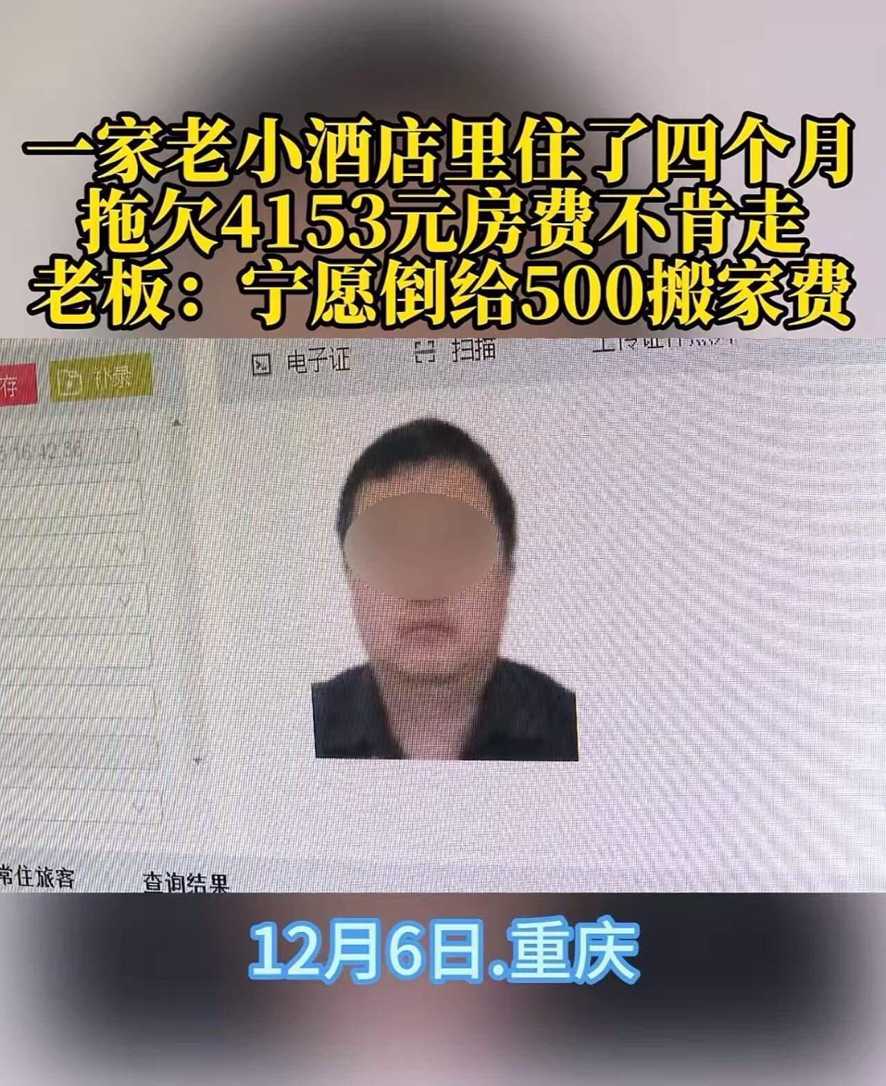 “太无赖了!”重庆,一家老小住在酒店四个月,拖欠4153元房费不肯搬走!老板:“我说房费免了,再倒贴他500块钱搬家费他也不愿意搬走!”房客:“你算哪把夜壶,让我走?”网友:一个善良的老板娘,一个毫无底线的老赖!看的人直摇头!难道这种情况报案都没用吗? 事情的背后,折射出的是社会中那些令人愤怒又令人无奈的“猫鼠游戏”。一个善良的老板,为了维护自己的权益,试图用善意打破僵局,却换来对方的“无赖”态度。这不仅仅是一个房东与租客的冲突,更是现代社会诚信缺失、底线在哪里的真实写照。 试想一下,这家老板娘每天面对的,是不断拖欠房费、无视规则的“老赖”,她或许也曾心存善意,试图用“让一步”换取和睦相处,但换来的却是一再的“无视”和“挑衅”。这样的“无赖”行为,难道真的没有办法?报警、起诉、甚至法院调解,却发现案件往往因为证据、程序而难以快速解决。 这不禁让人深思:我们生活在一个制度逐渐健全、法律逐步完善的社会,为何一些“老赖”仍然如此嚣张?他们似乎在告诉我们:只要有“关系”、只要“能拖就拖”,就能占到便宜,哪怕是破坏规则,也能“逍遥法外”。而另一方面,那些像这位老板娘一样守住底线、善良坚持的人,却可能因为证据不足、制度不力而陷入被动。 更令人愤怒的是,社会对“老赖”的宽容似乎在某种程度上助长了他们的“无赖”行为。有人说:法律要更严,惩罚要更重;有人说:公众的监督也很重要。这些声音都在提醒我们:一个没有底线的社会,终究没有未来。诚信缺失,不仅伤害了守规矩的人,更侵蚀了社会的根基。 面对这场“官司”式的博弈,我们是不是也该反思:在我们的日常生活中,是不是也有人在“潜规则”和“灰色地带”中游走?我们是否也在无形中放任了某些“无赖”的嚣张?更重要的是,我们能做些什么?除了吐槽、怒骂、呼吁惩治外,我们是否能用行动守护诚信、守住底线? 或许,最根本的还是制度的完善和法律的落实。只有让每一个“老赖”付出应有的代价,让善良的人不用再为“无赖”买单,社会才能真正变得更加公平、正义。我们每个人都应该成为守护底线的一份子,坚信诚信的力量,坚信善良不会被辜负。 这场“重庆房东对抗老赖”的事件,只是一面镜子,折射出整个社会的良知与底线。愿每个像老板娘一样坚持正义的人,都能得到应有的尊重与保护,也希望那些“无赖”们,早日醒悟,遵守规则。只有如此,我们的社会才能少一些无奈,多一些温暖。租房押金不退 房租退还纠纷 重庆酒店纠纷 房东乱扣费 装修押金 押金不还 酒店不讲理