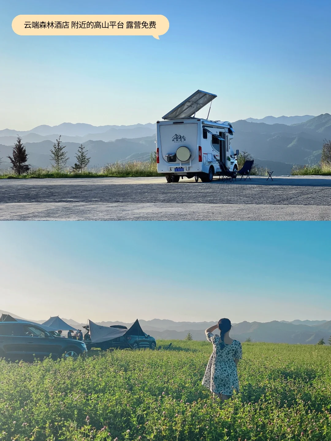 3️⃣鳌山滑雪场。民宿对面,可导航 太白鳌山云端森林酒店,酒店的东边有一片高山平台,车可直达,露营视野宽阔,晚上10几度,要带薄羽绒服或者冲锋衣。再往上有一片花海。