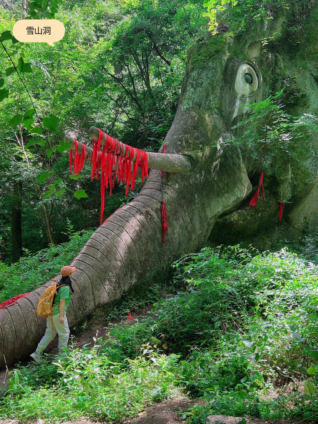 5️⃣雪山洞,1小时路程。最近很热的巨石象和七层古塔就在这里,相传丘处机在此修炼。一路都是盘山路,路况好,但大车较多,新手不建议。