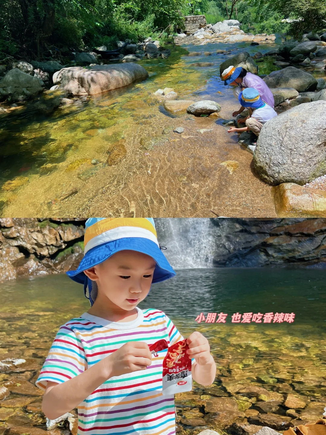 道路都是石头路,部分被冲没了,要沿河道大石头走,我们带的6岁小朋友徒步,走走停停1个多小时到瀑布