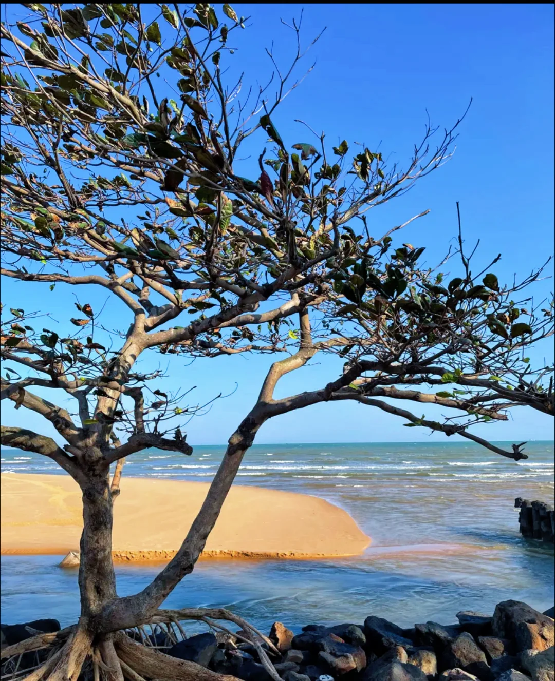 [种草R][种草R]这里海边还有一颗独孤的树,拍照很出片。小河不深到,到小朋友膝盖处,里很适合遛娃、玩水,玩沙子。