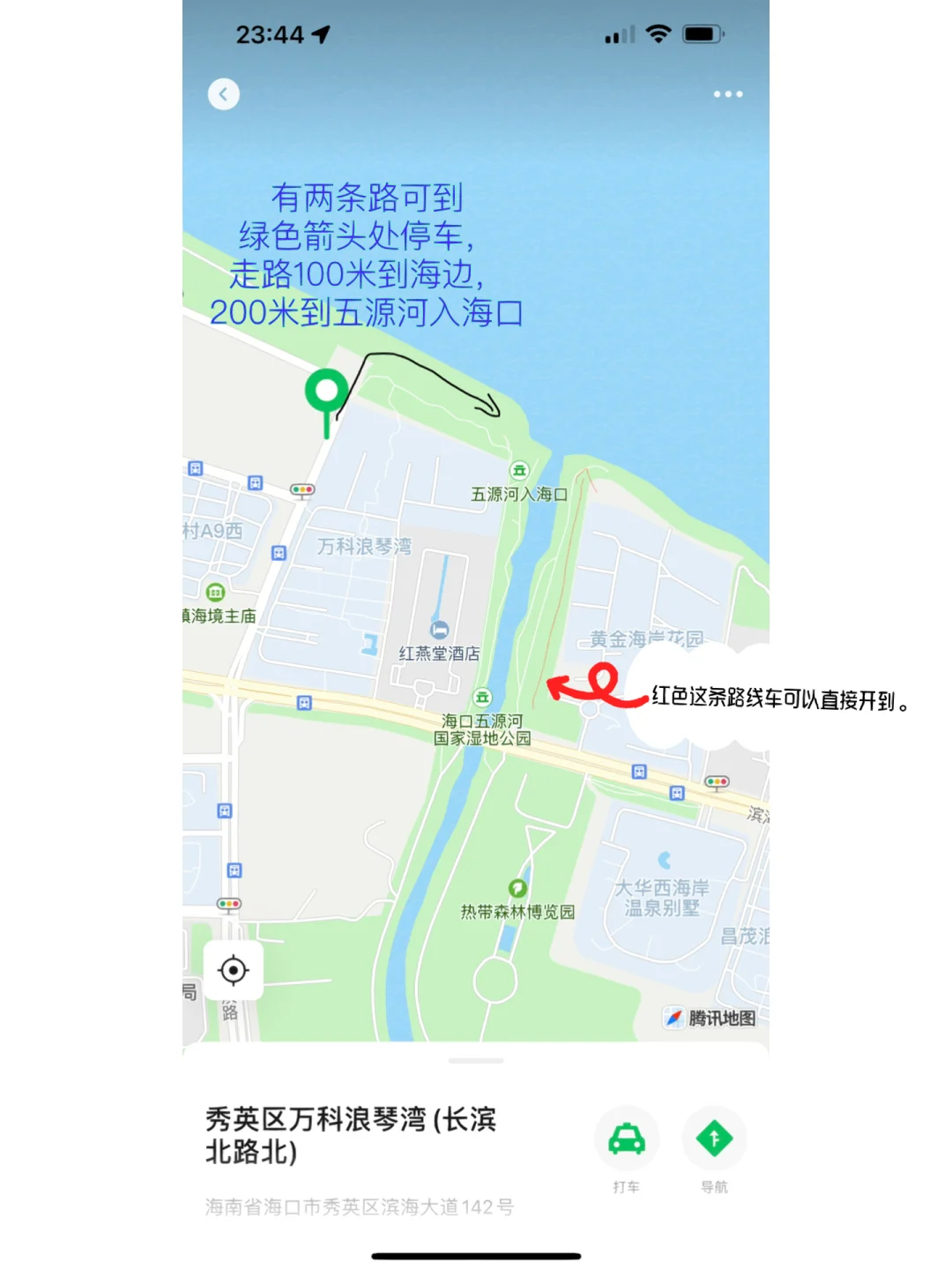 [向右R][向右R]海口 五源河湿地公园。车可以开到,路线在最后面截图,是个很美的露营地,停车方便,附近有厕所。即使节假日人也不会很多,大海、河流、沙漠都在这里相遇,所有的河流最终都会流向大海。很多次自驾海南从徐闻到海口,因为小众,我都错过了这片的很美的海湾。