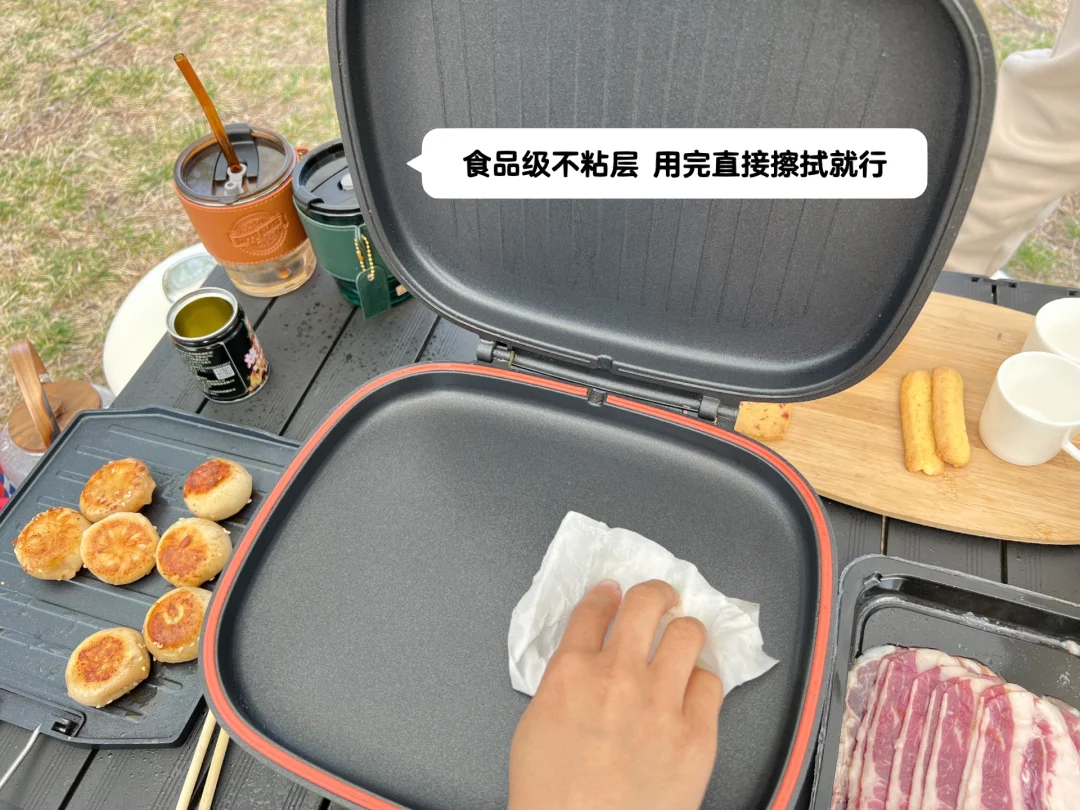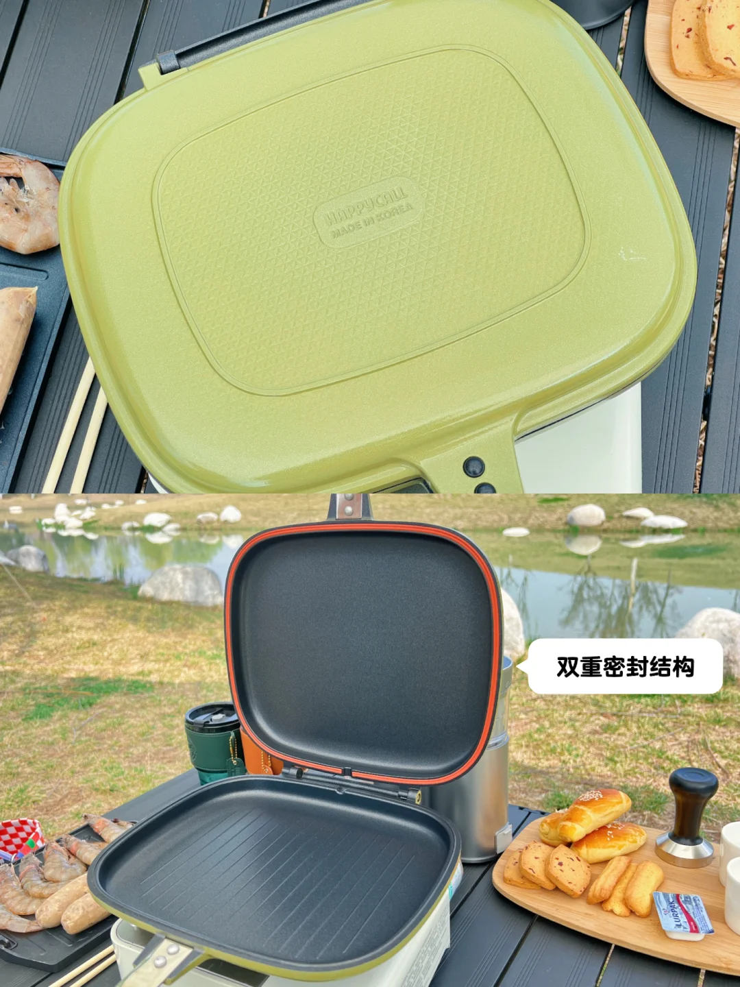种草这款happycall双面蒸煎锅,外观设计好看,操作起来很方便。煎的时候盖上盖子,后面有个出气孔,可以翻转过来双面煎,不会溅油出来,比户外打烤盘做食物更快,用完也很好清理,纸一擦就干净了。