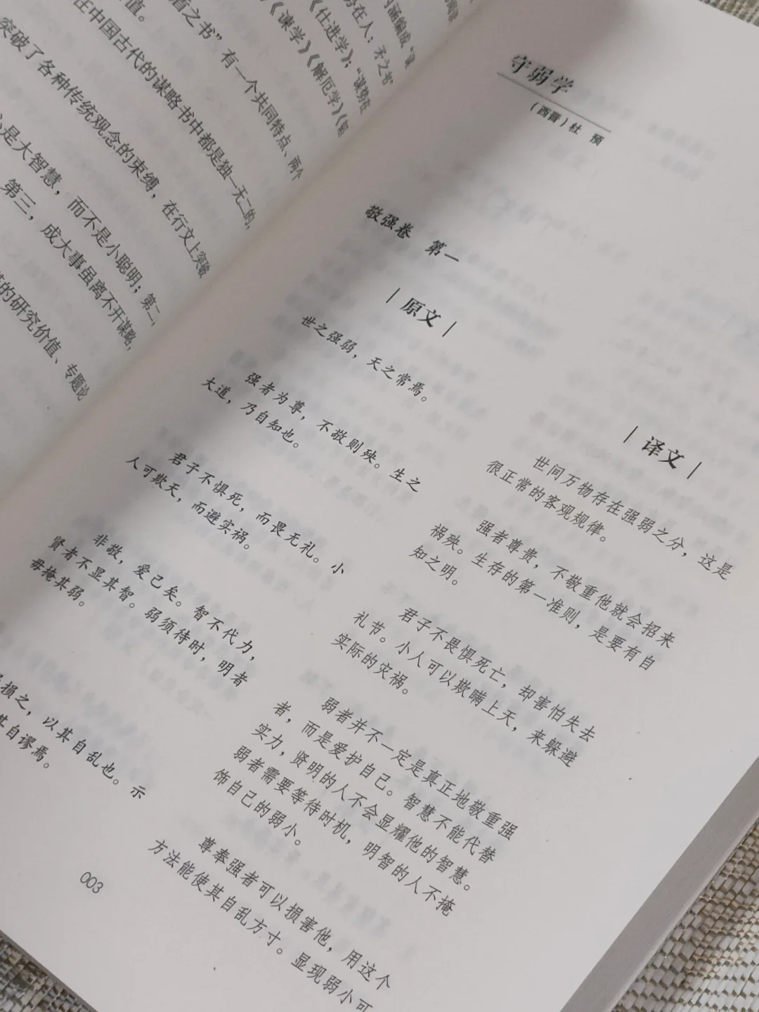 ✨这套书虽说是历史谋略书,但读起来非常轻松,并非晦涩难懂的文言文,每个章节都带有金句注解,原文和译文一一对应排列,引用经典历史故事通俗易懂,还可以积累史料素材。ㅤ