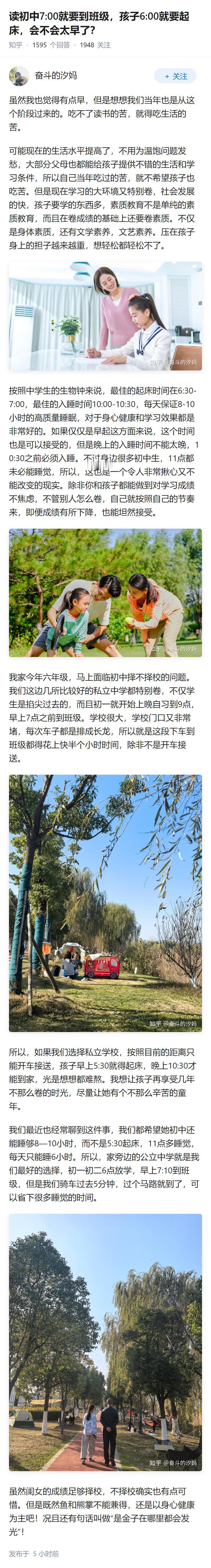 读初中7:00就要到班级,孩子6:00就要起床,会不会太早了?