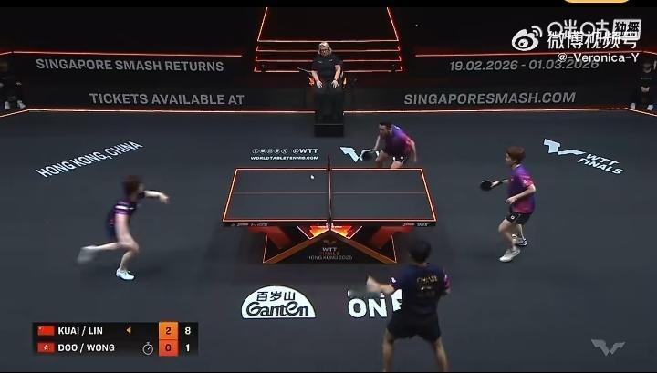 用时不足三十分钟! 林诗栋/蒯曼🇨🇳直落三局获胜! 刚刚结束的一场2025WTT香港总决赛混双第一阶段循环赛第一组第一轮比赛中, 栋曼组合🇨🇳3-0轻松击败主场作战的黄镇廷/杜凯琹🇭🇰,取得小组循环赛第一轮的胜利,三局比分为:11-9,11-4,11-4。 大圣局末两个球打得真好,唉,早这样他们也可以在赛场多呆一会儿啊。 反正这是大圣自己抽的高端局,碰上栋曼,真没办法了[捂脸]。