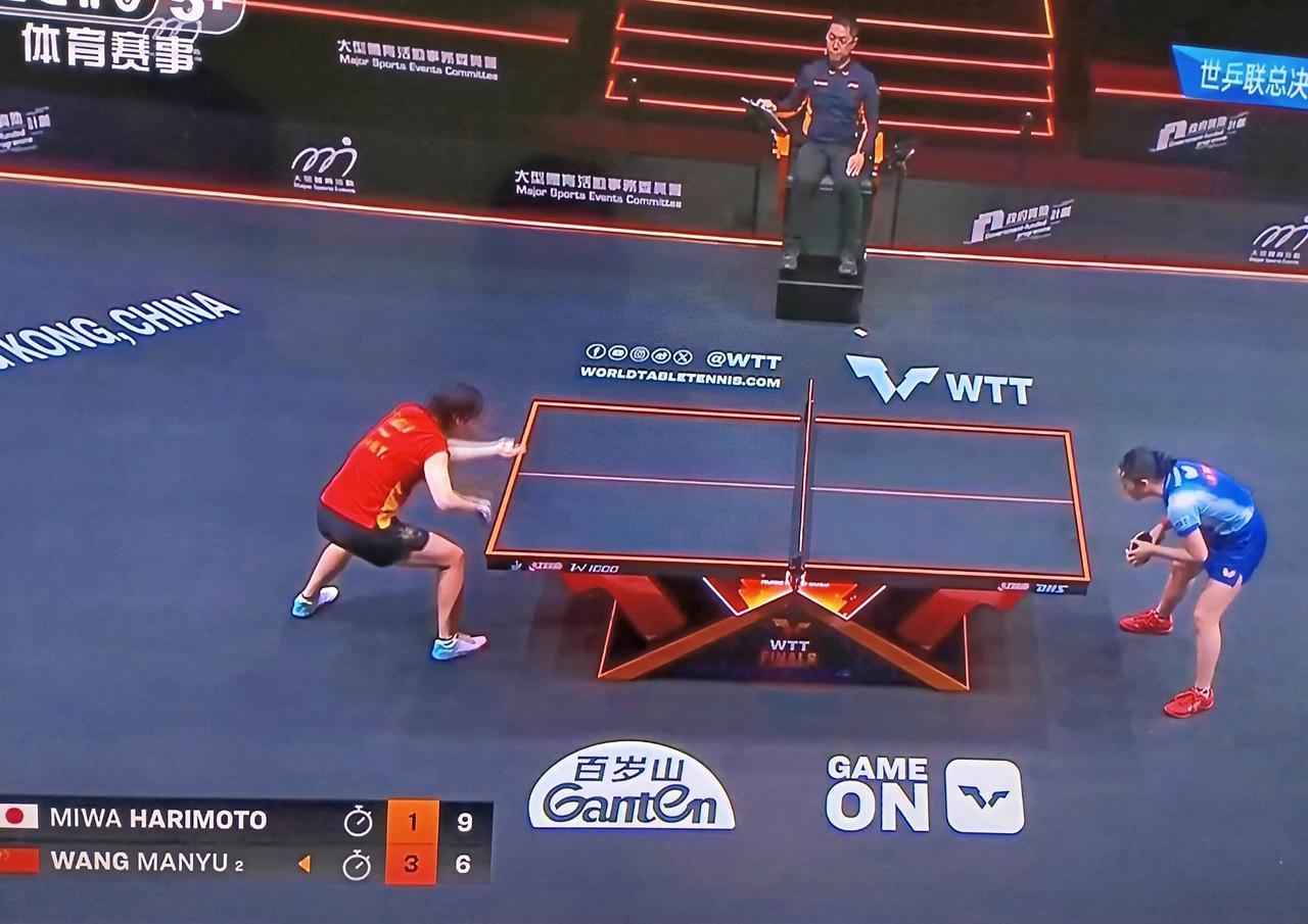 第五局开局曼昱🇨🇳0-5被张本美和🇯🇵领先了! 前四局曼昱11-6,11-8,11-13,11-6领先张本美和,大比分曼昱3-1领先! 这是2025年WTT香港总决赛女单1/8决赛。 曼昱会打逆风球的,连续几个反手发球,把比分追上了一些,但开局挖的坑还是太深了,最终第五局王曼昱🇨🇳9-11不敌张本美和🇯🇵,大比分曼昱3-2领先! 曼昱加油!