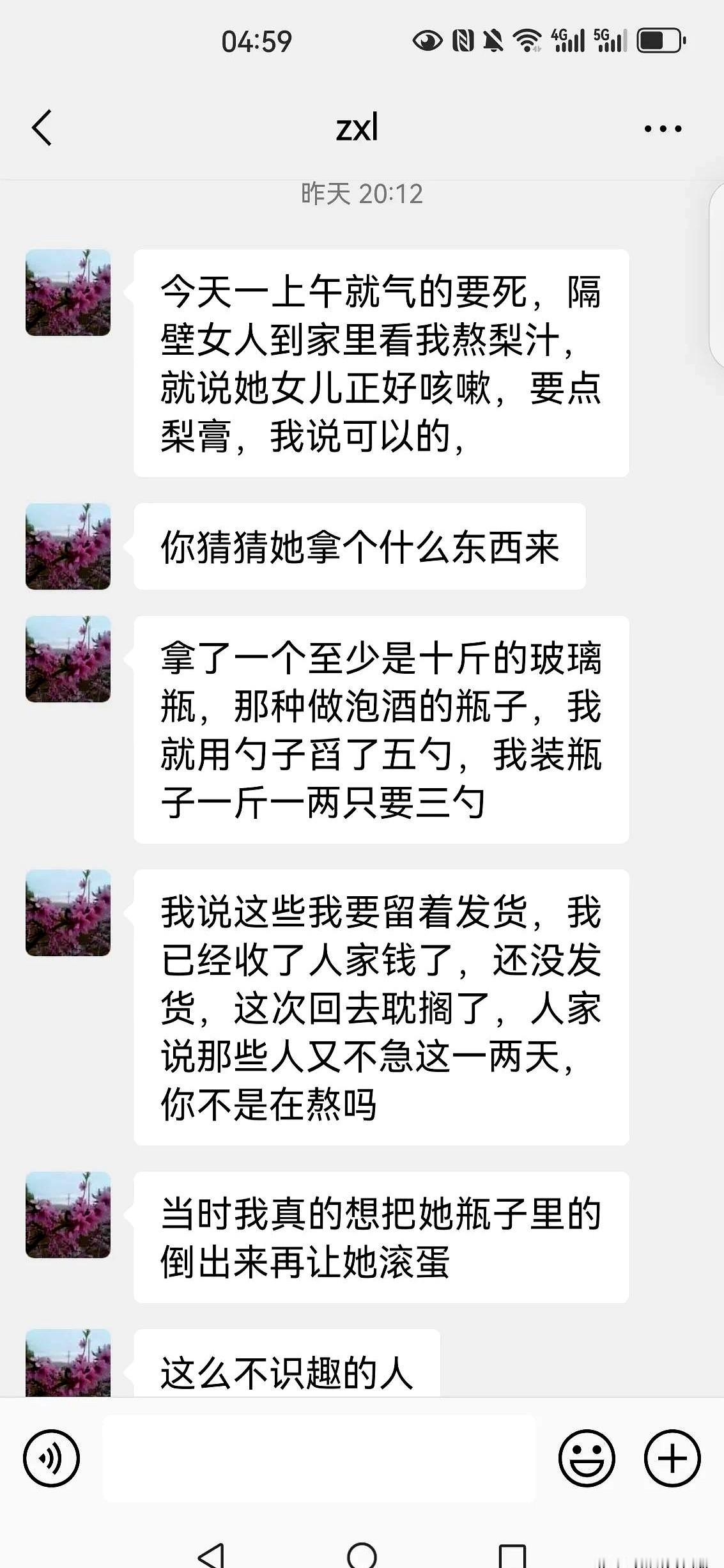 一瓶十斤的泡酒罐被提到厨房门口,邻居张嘴就要灌满梨膏的画面不出三秒就让微信群炸锅,笑点不在于“要点梨膏”而在于直接拉空投,像点外卖一样把人家辛苦一上午的成果全打包走,这事搁谁身上都得愣神三秒再反应过来自己是不是听错了。 先看成本,公开农业数据给了参考价,红酥梨一斤地头价两块多,可十二斤梨只能熬出一斤膏,柴火电费不算,人工按农村临时工八十块一天计算,一锅膏至少四小时,掐指一算,一斤膏进价逼近二十,十斤就是两百,隔壁大姐伸手要走的是别人半个月水电粮油的预算,这逻辑搁超市收银台没人敢这么扫货不付钱,却在“邻里情”这层糖衣下显得理所当然。 问题来了,农村人情向来讲究“礼尚往来”,为什么有人敢大张旗鼓“白嫖”,村里老人给出解释:她家平时就爱占小便宜,别人顾面子不吭声,她就当默认,这回碰到梨膏属于半成品,心理价位模糊,于是干脆放胆出手,赚不成也不亏,反正一句“娃咳嗽了”能道德绑架,大不了被白眼也无伤大雅。 但这招在2023年的乡村已经越来越难用,年轻夫妻大量回流务农,靠直播和社群卖农副产品,东西有明码标价,邻里之间也讲契约关系,讨口水就能要走十斤梨膏的时代过去了,舆论在微信群里实时发酵,今天一个截图、明天一条短视频,全村都知道谁喜欢空手套白狼,这比当面拦还管用。 回到梨膏本身,它不是矫情手艺,而是时间堆出来的劳动价值,谁都能顺手递一勺尝鲜,但整罐端走就该付钱,越是熟人越要守边界,否则下次你想借鸡蛋,他偏偏没听见门铃,人与人之间的信用就是这么被薅秃的,在此留个悬念:当“白嫖”按成本计价后,这位邻居还会再来敲门吗。