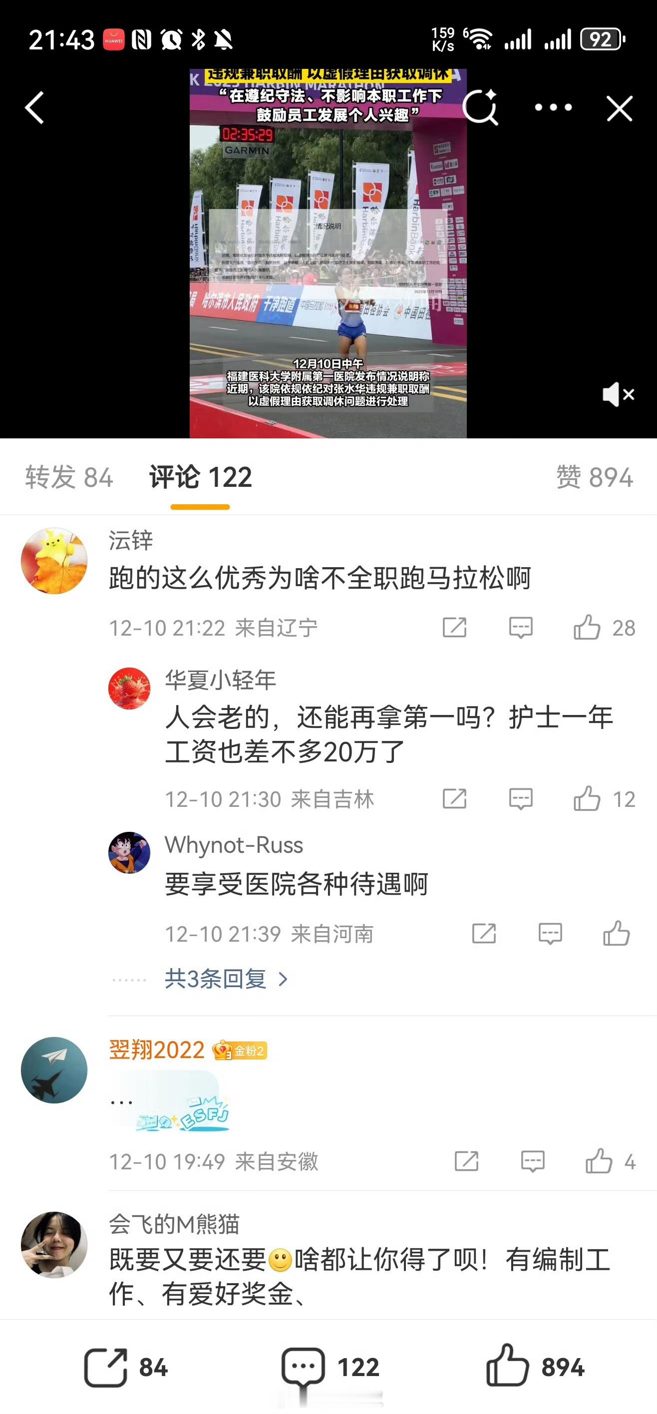 同事加班我跑马获奖20万我只能说,张水华这种人真的太自私了。同事也有家庭,同事也不可能一直为了你的“梦想”做出调休时间的牺牲。网友也说的很对,真有抱负和能力,应该辞掉工作去跑职业,而不是在企业里钻空子一直想着为自己谋“福利”。职场上最讨厌就是这种人!! 广州