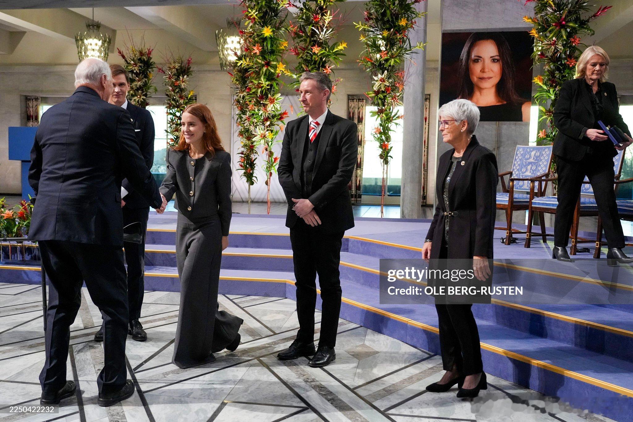新闻 2025.12.10 挪威王室成员接见今年的诺贝尔和平奖得主(今年的获奖者是委内瑞拉反对派领袖玛丽亚·科里娜·马查多,由她女儿安娜·科丽娜·苏萨代为领奖)和出席一年一度的诺贝尔和平奖颁奖典礼,小英首次参加颁奖典礼,另外她还和母亲梅特出席2025年儿童和平奖庆祝活动。
