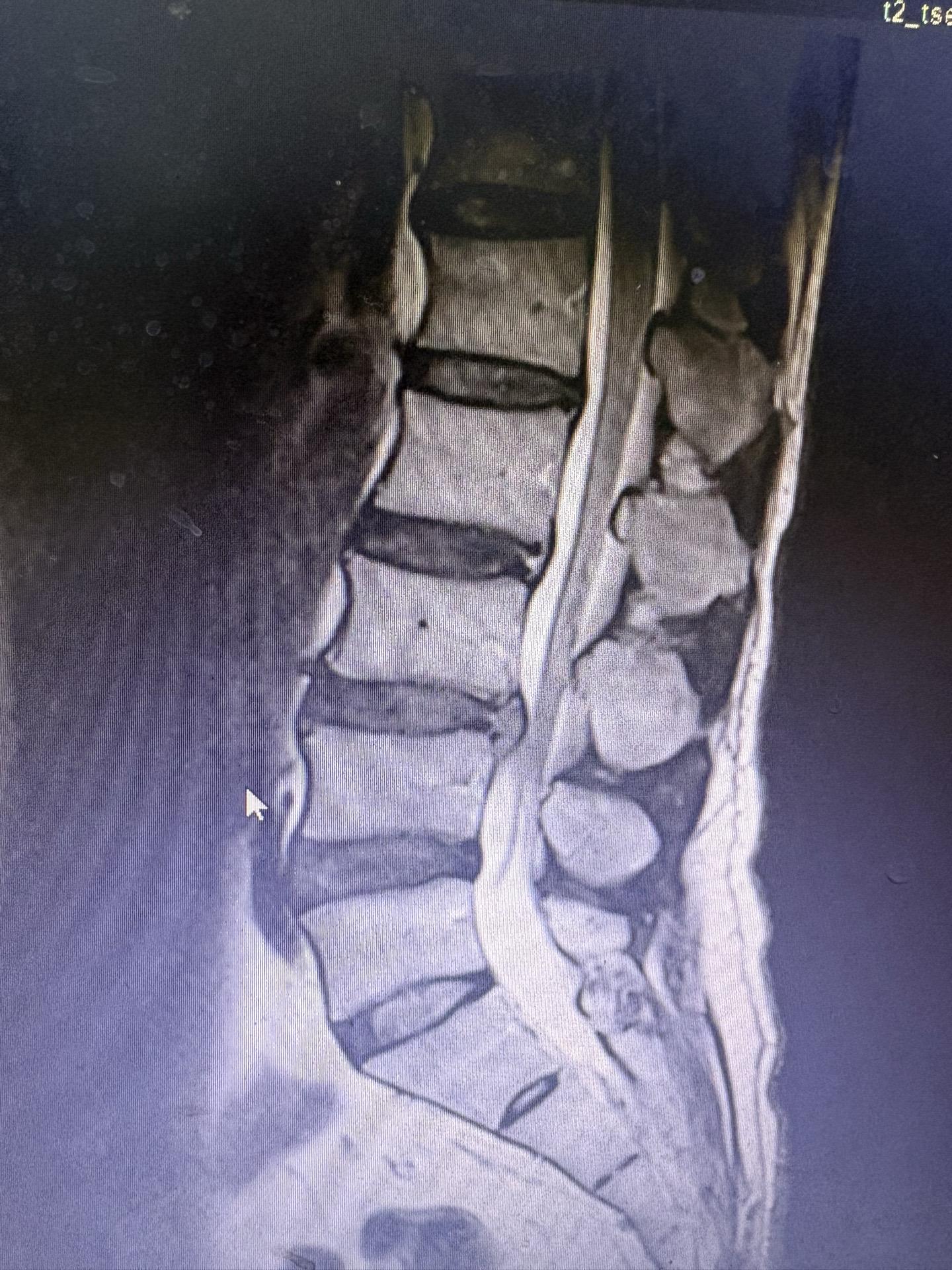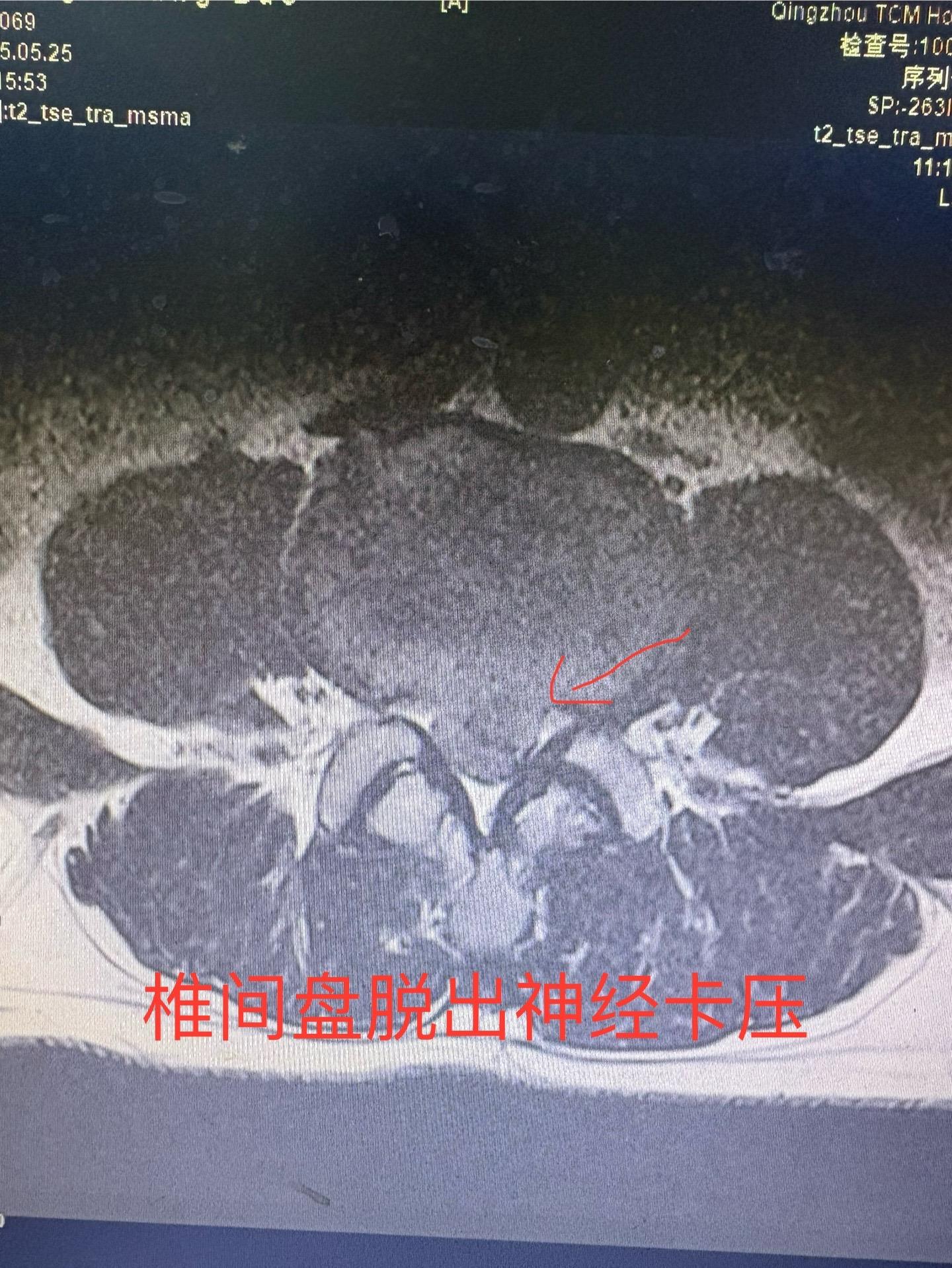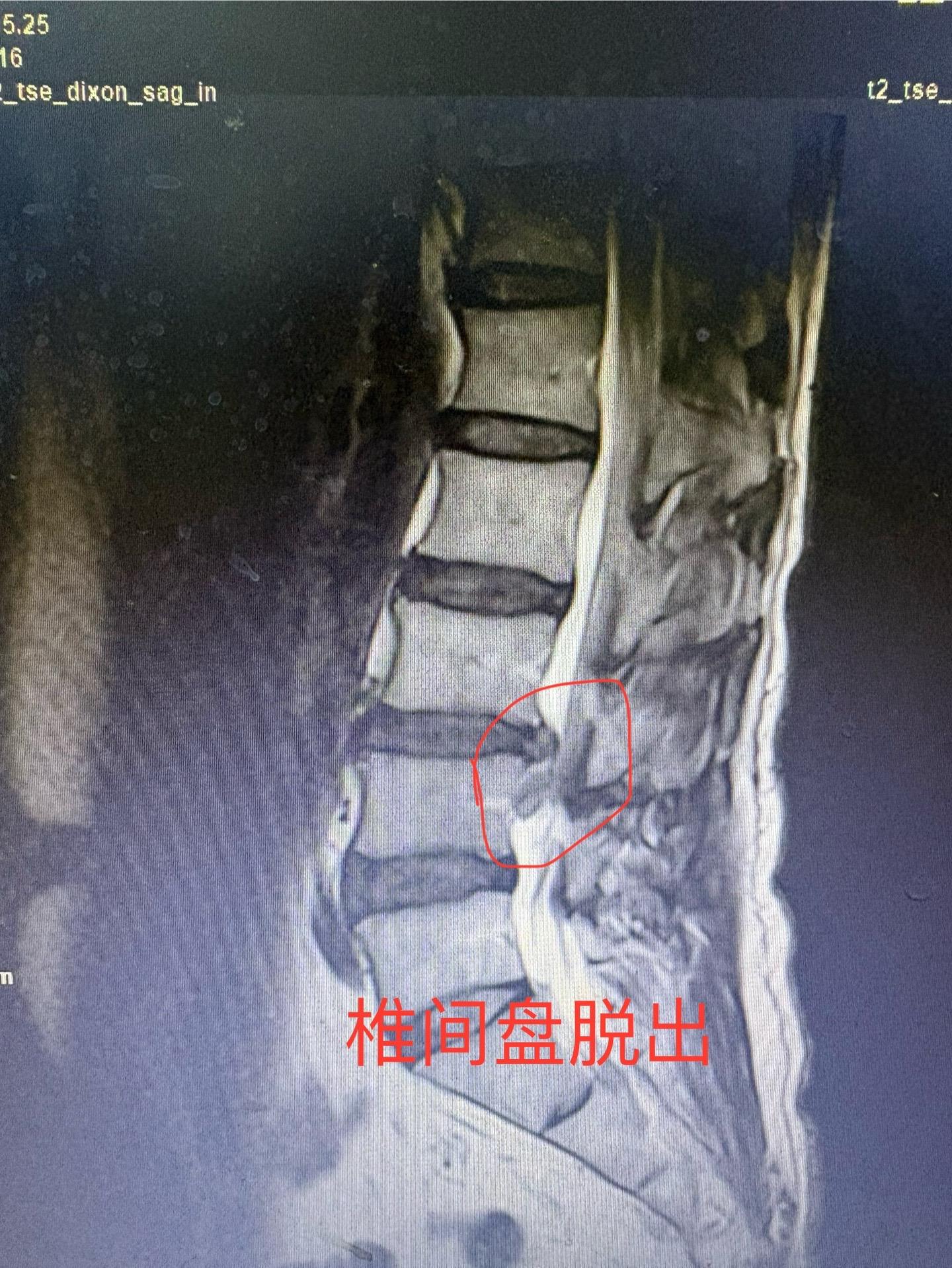 一个患者说扭到腰痛了一个月没好,当地医院做了ct说没问题,今天检查磁共...