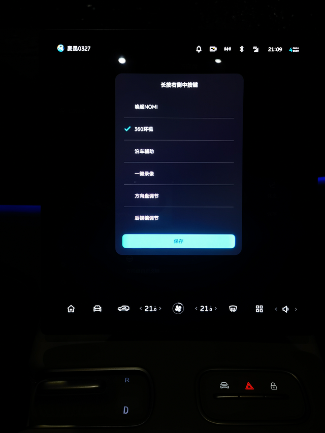 蔚来方向盘的这个按键可以自定义 今天发现了一个宝藏功能,就是自定义蔚来二代车的方向盘右侧按键区域的中间那个按键的功能,默认状态下,这个按键是调出人工语音nomi进行交互,现在Banyan3下面都免唤醒了,所以这个功能也就没有啥必要了;但是,哈哈不出意外但是还是来了,就是这个键可以调整为别的功能,目前可以选择有这些“360环视”,“泊车辅助”,“一键录像”,“方向盘调节”,“后视镜调节”;从我角度来说,我觉得最有用的应该是“360环视”,我认为这个在实际用车场景中用到的概率会相对对较高,而且需要360的时候,一般都是比较可能剐蹭的时候,更需要集中注意力在行驶上面