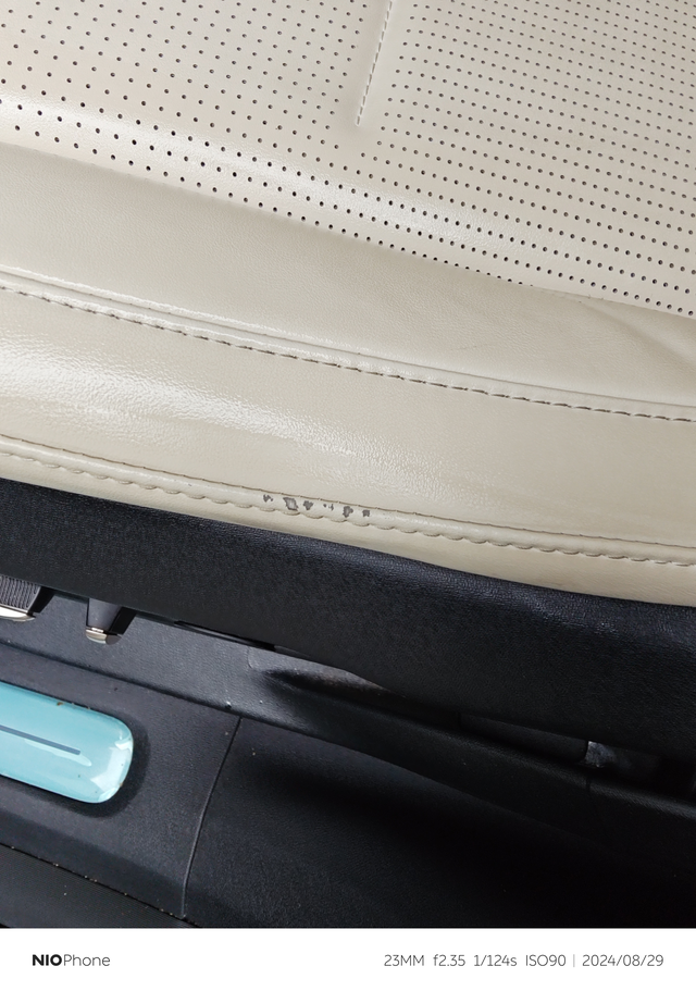 2023款Es6主驾座椅损坏 发现主驾侧面发现表面材质脱落!于是驱车去蔚来合肥长春街服务中心要求索赔,被告知是外力作用损坏,不能质保! 我的座椅的外力就是我上下车和坐在座椅上,难道座椅不坐,站着开车吗? 有人说你这个像刮的,我一直用蓝牙钥匙,没东西刮坏。如果说是上下车蹭的导致损坏,那说明这个座椅本身就是有问题的,有那个品牌开一年座椅就磨损成这样,我目前只知道我的车是这样。需要有朋友帮忙维权