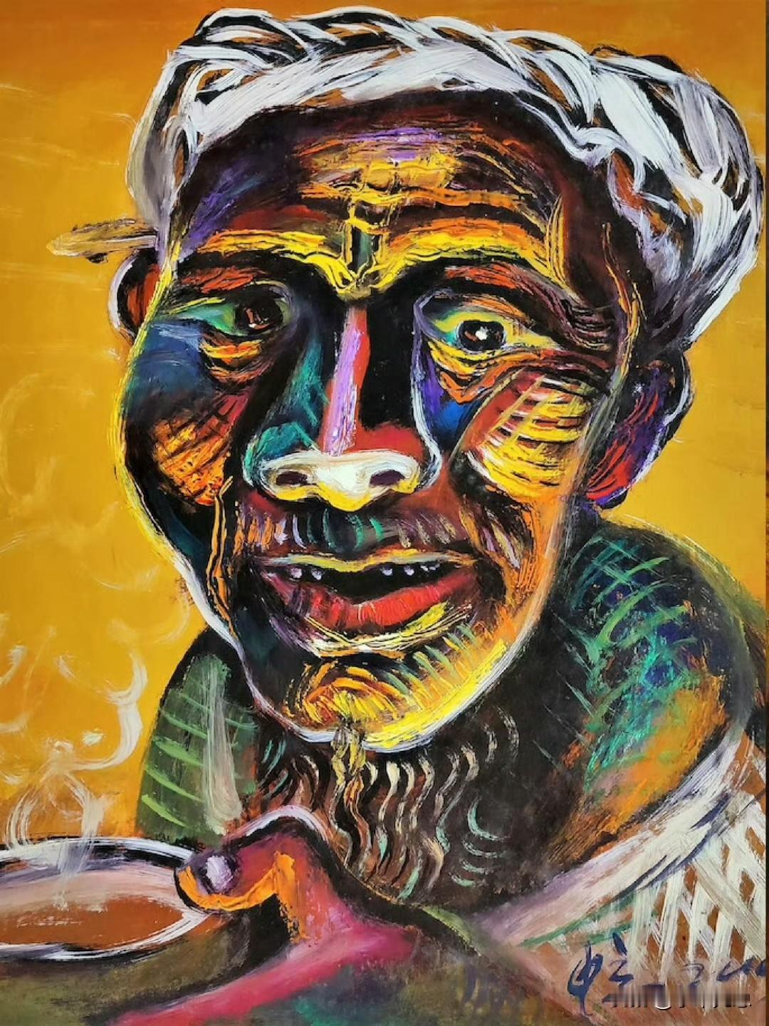 谁敢相信 这两幅画是同一个人画的 四川美术学院的前院长罗中立, 在1980年画了左边这幅画。 后来他去欧洲进修了两年, 在西方的影响下, 他又创作出了右边这幅画。 两张图画的都是农民, 我还是更喜欢左边这张。 右边这张有点抽象, 我欣赏不来[捂脸]