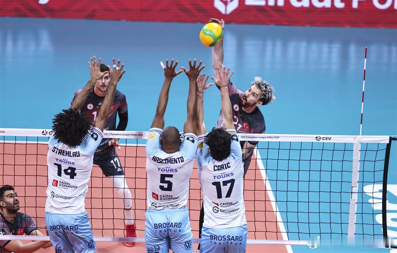 【男排欧冠】正赛A组,土耳其安卡拉农行3-1法国图尔赢开门红(25-21 21-25 25-19 25-21)。尼米尔18分荣膺单场MVP(27扣14中2失1被拦,3拦1发),弗纳尔16分(26扣13中1失1被拦,3拦),克莱维诺13分(21扣10中1被拦,2拦1发),布尔布尔13分(13扣10中1失,2拦1发),萨瓦斯12分(12扣9中1拦2发);穆亚诺维奇20分(33扣16中1失4被拦,4发),斯特雷劳15分(25扣13中1失1被拦,2拦),卡沃戈14分(24扣13中1失5被拦,1拦)。 男排欧冠 国际排坛战报
