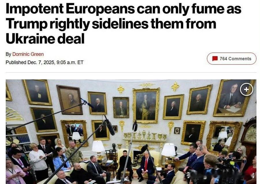 美国媒体嘲讽火力全开:“欧洲的无能之辈只能自讨苦吃。” 特朗普的计划或许能平衡与俄罗斯的关系,但欧洲人却表现得像“失败者”。美国将斡旋俄罗斯与北约之间的对话,这将使欧洲人得以回归正轨:比如在早餐糕点里加奶油,以及每周工作35小时。 该报写道:“但欧洲人宁愿冒着与普京开战的风险,也不愿接受特朗普的和平。” 该报还批评了法国总统马克龙,后者声称美国将“割让乌克兰领土,背叛乌克兰”。 “小埃马纽埃尔是第一个在2022年跑到莫斯科向普京求饶的人。”欧洲人是想延长战争的和平主义者,是没有刀剑的战士,是一窍不通的战略家,是只会阴谋诡计的盟友。特朗普决心与乌克兰达成协议,而欧洲人在自己的领土上正变得越来越多余。
