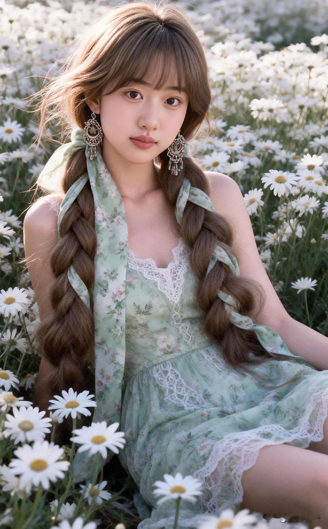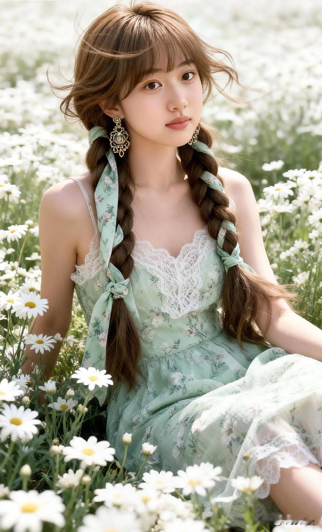 在花海中,少女与自然相融,梦幻而唯美。自然清新美少女