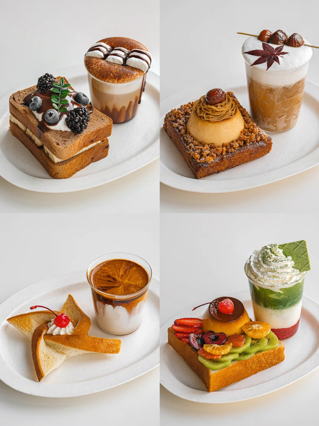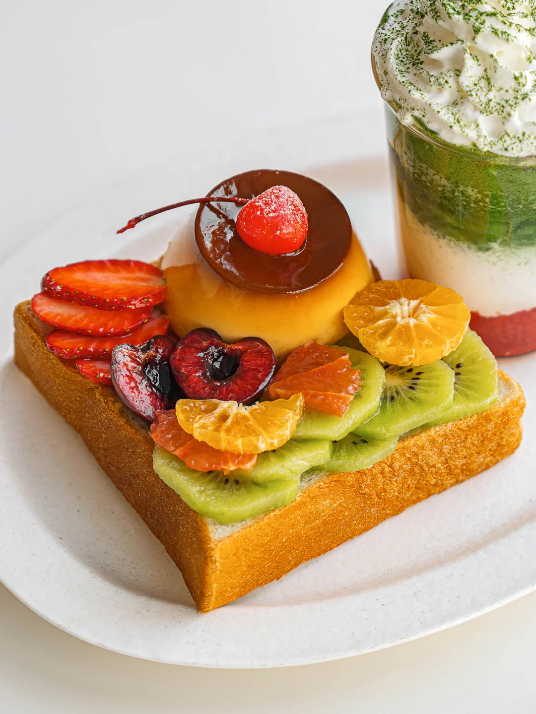 水果焦糖布丁吐司+草莓抹茶拿铁