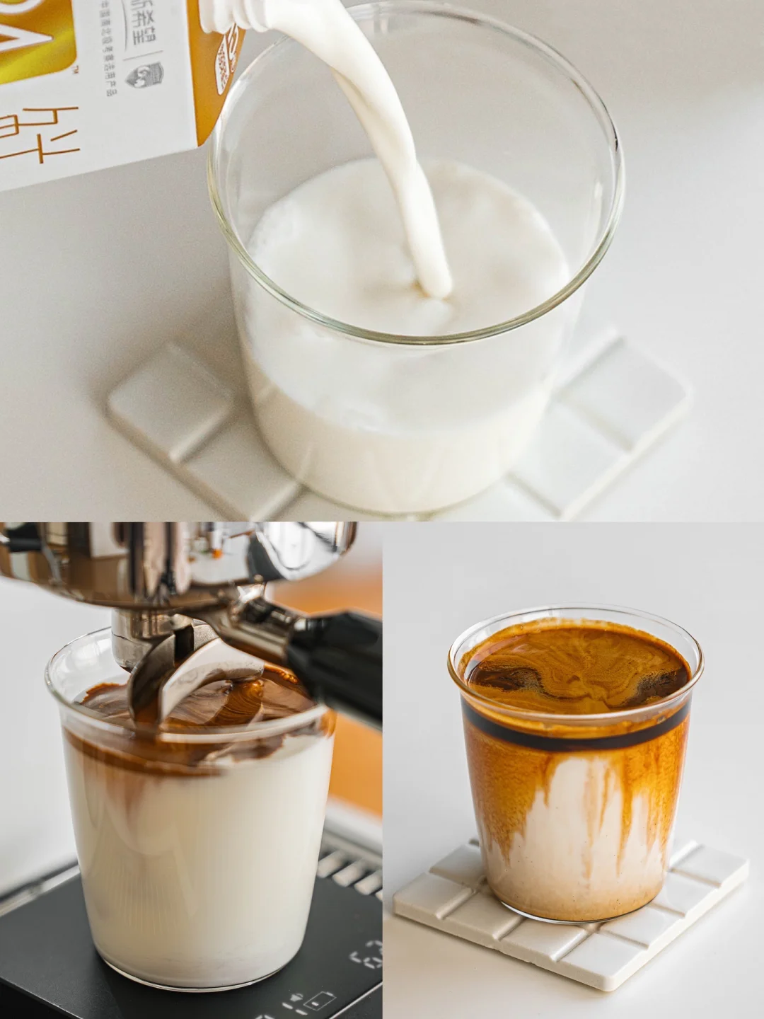 食材:鲜奶+咖啡液