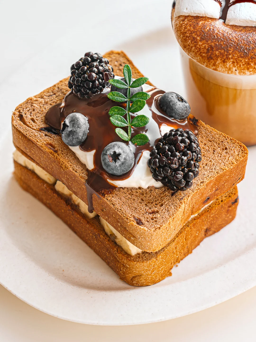 香蕉酸奶可可吐司+棉花糖热可可