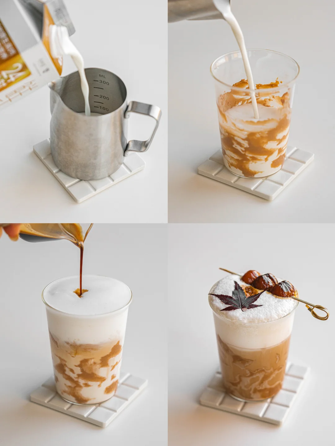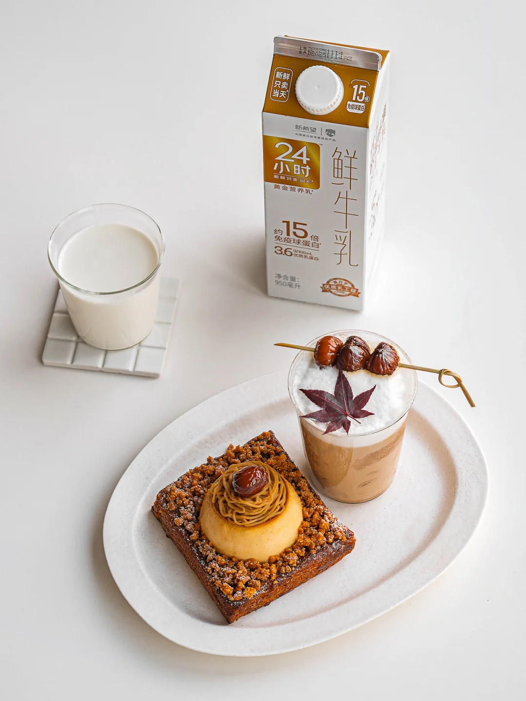 食材:栗子|24小时鲜牛乳|栗子酱|咖啡液|枫叶