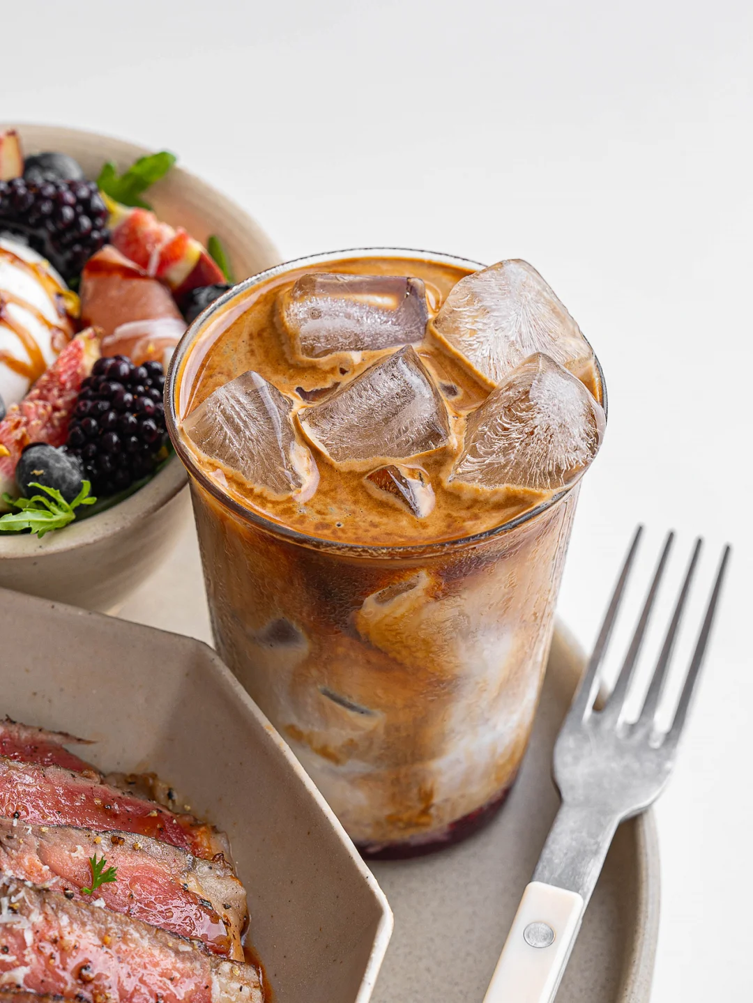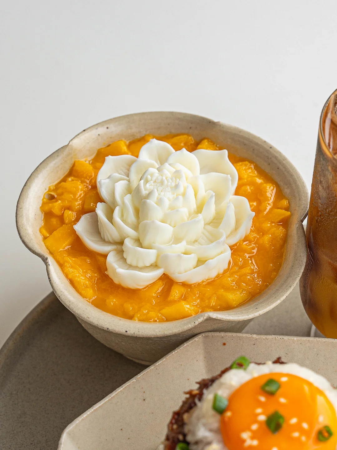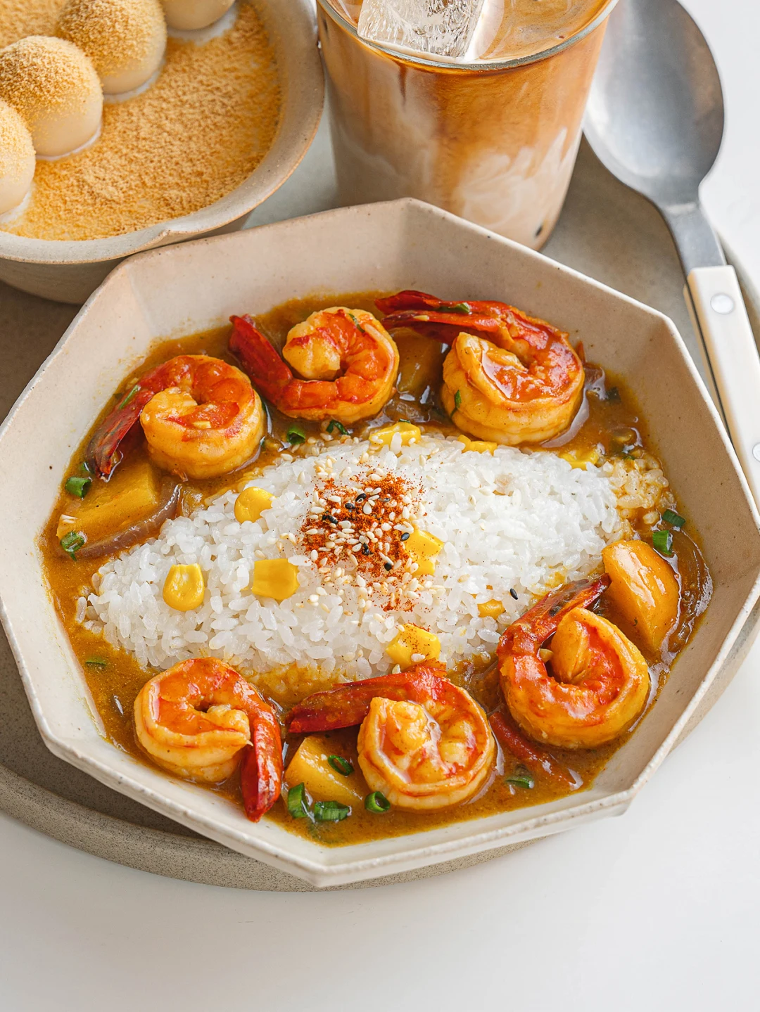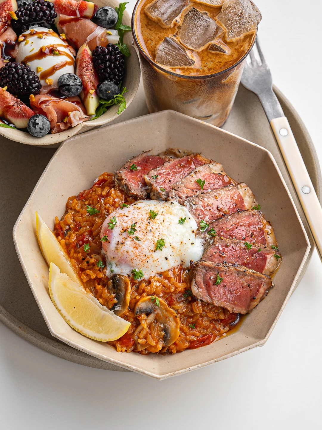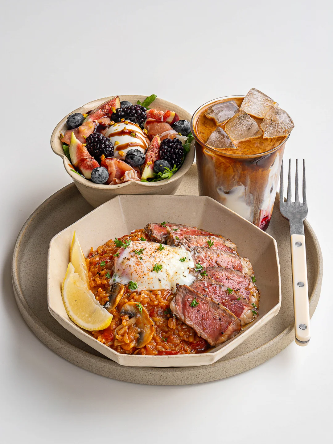 ❶黑椒牛柳意面+鲜虾羽衣甘蓝沙拉+冰拿铁 ❷日式汉堡肉盖饭+芒果奶冻+橙C美式 ❸牛排番茄烩饭+布拉塔沙拉+玫瑰拿铁 ❹苹果大虾咖喱饭+豆乳布丁+冰拿铁