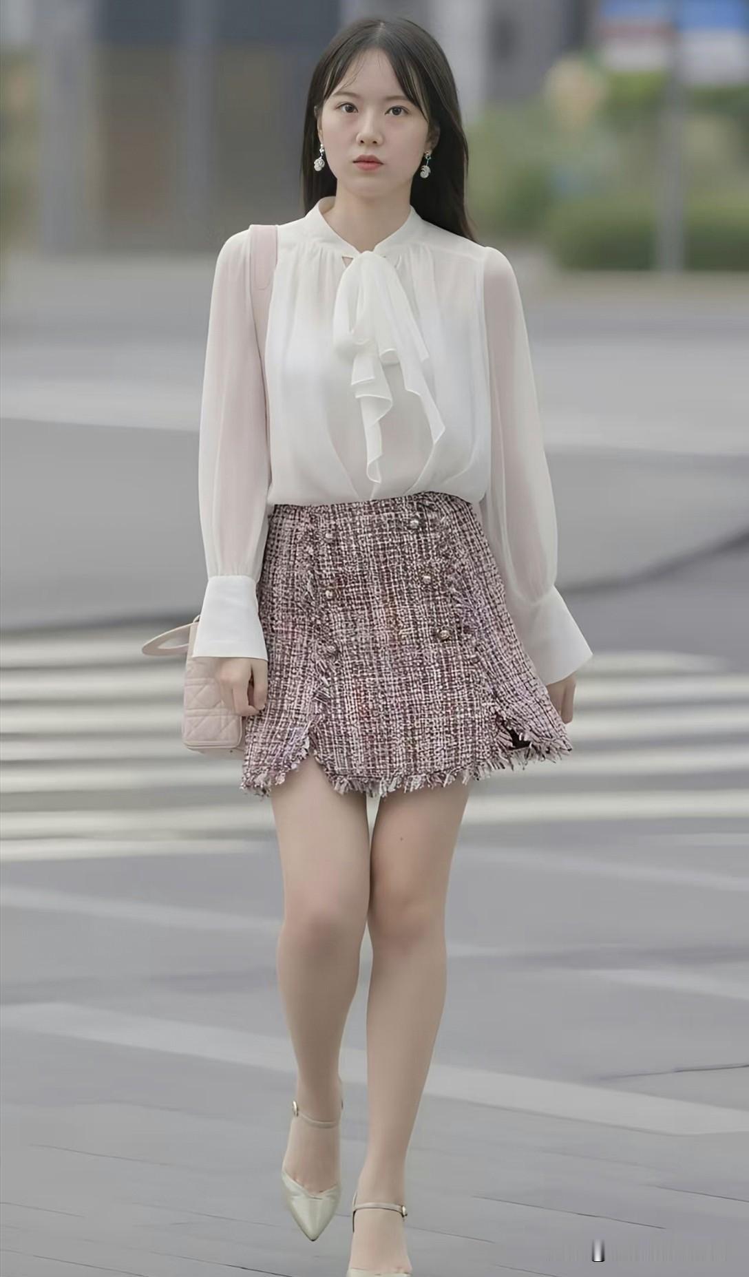 优雅白衬衫搭配复古格纹裙,都市时尚感十足