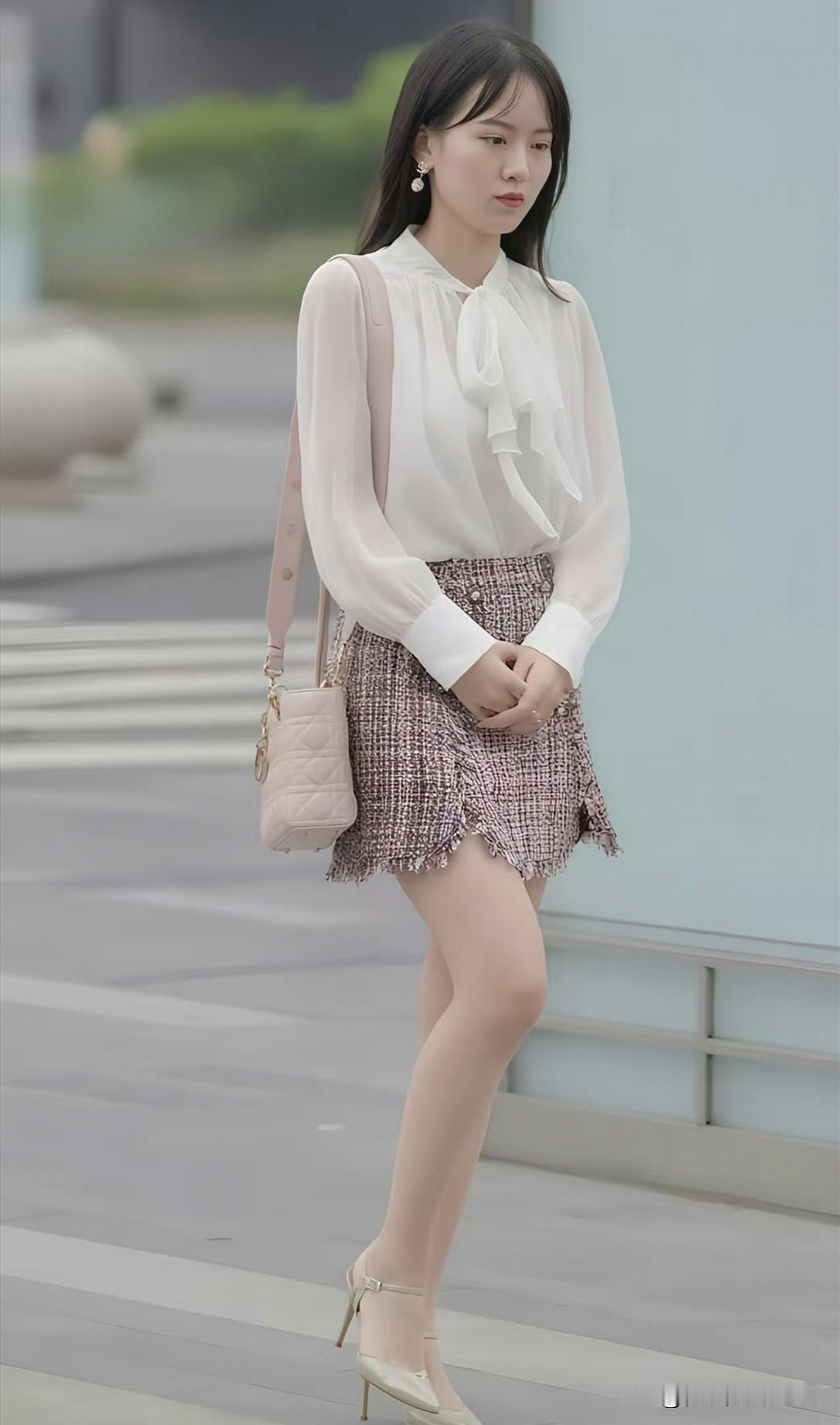 优雅气质穿搭,浅色系套装搭配高跟鞋,尽显时尚魅力