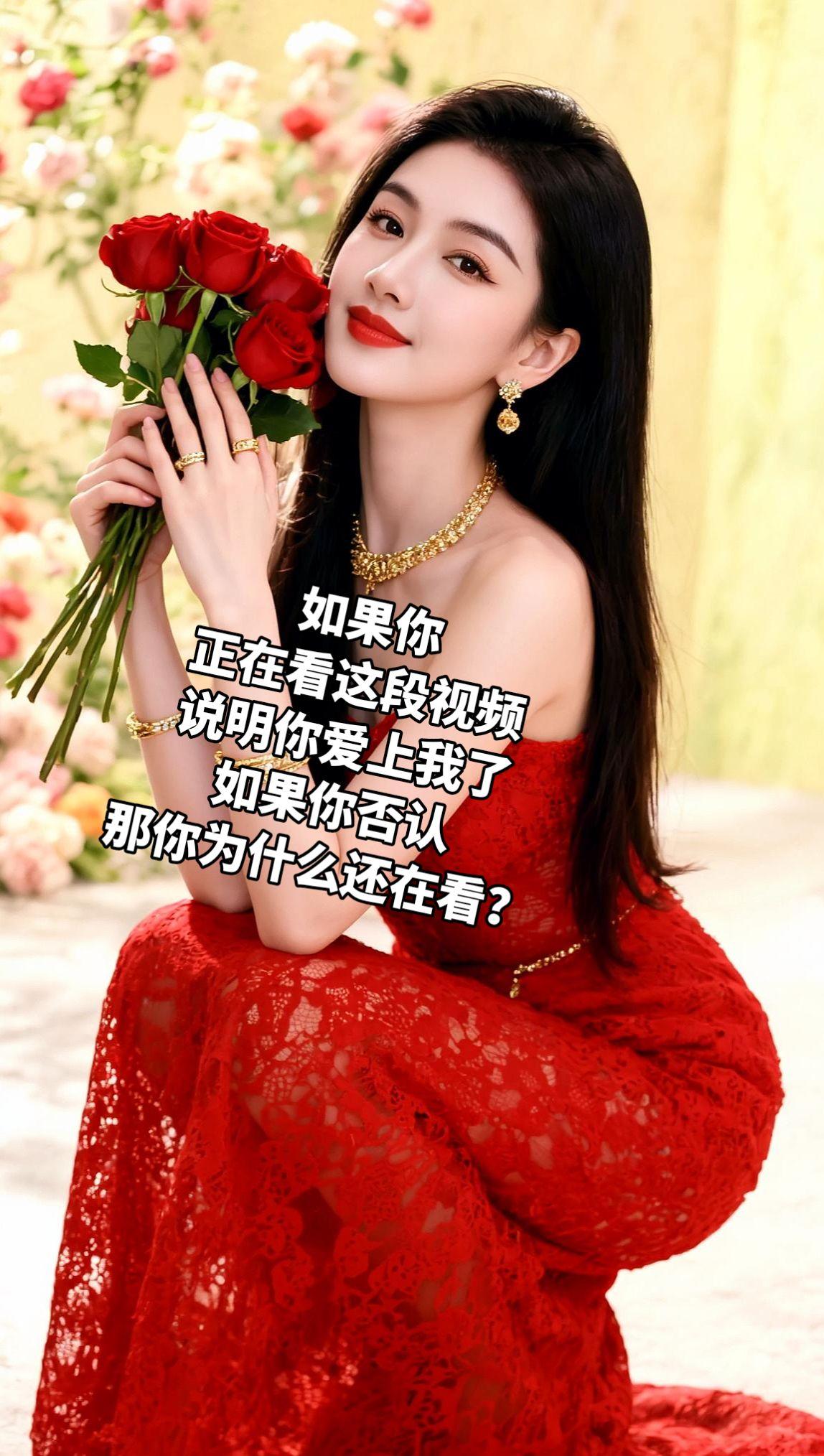 温柔甜美的少女,红色背景下的清新自然 温柔蓝裙少女 红衣微笑少女 温柔气质粉色
