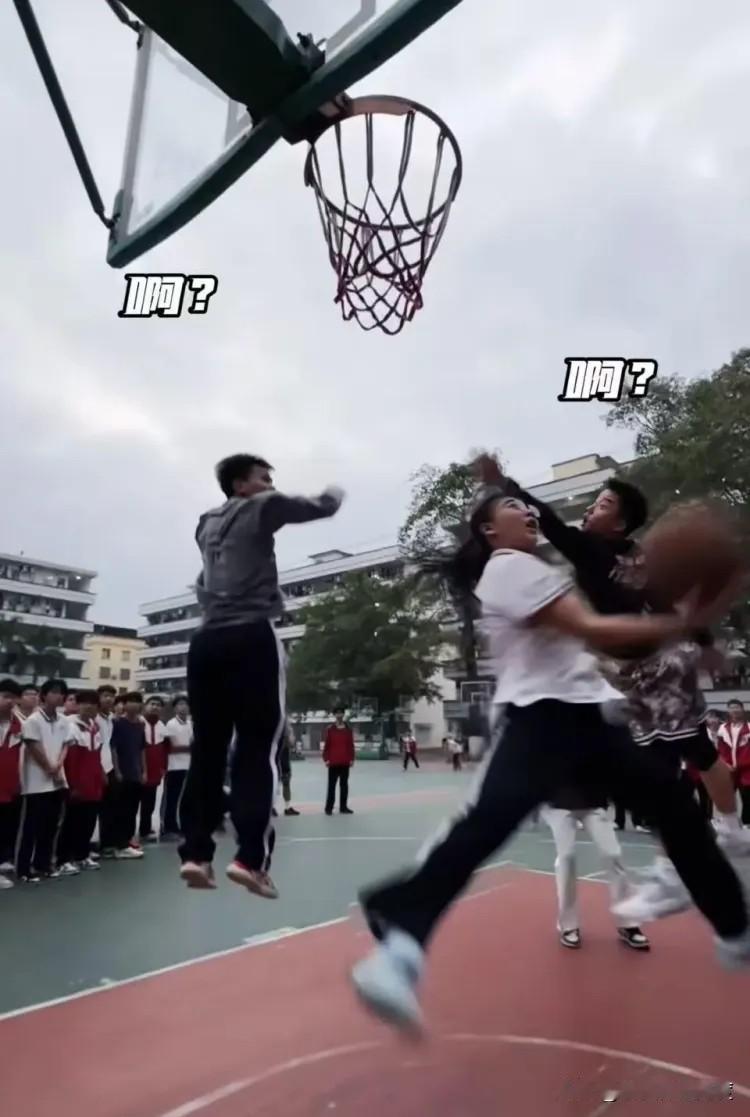 你看过这样的女生打球吗?穿校服、戴眼镜,文文静静,一上场却把两个高个子男生给“打”懵了! 广西这位高二女生冯敏敏,面对左右夹击,一个灵巧变向直冲篮下。就在被盖帽的瞬间,她竟然高高跳起,在空中一停、一躲、一抛——球进了!防守的男生直接抱头惊呼:“这怎么进的?”网友们都称这招是“神龙摆尾”。 原来她是每天训练两小时的体育生,还拿到了国家二级运动员称号。真是天赋加苦练,谁也挡不住! 你身边有没有这种深藏不露的“高手”?来聊聊让你最佩服的人吧!女篮身高 篮球高手女孩