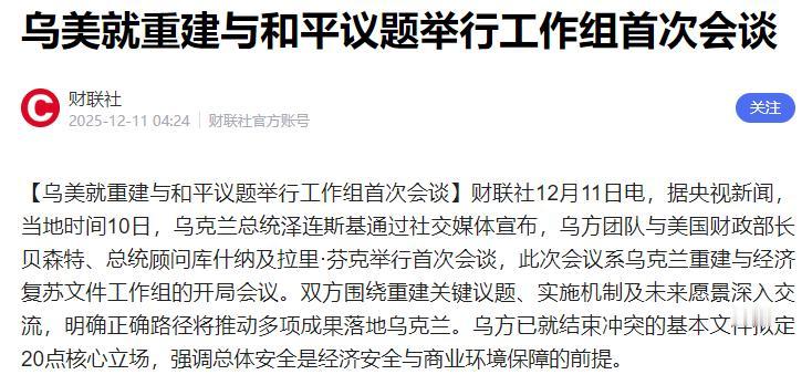 乌克兰这仗还没打完,就开始谈重建了。 12月11日,乌克兰总统泽连斯基亲自官宣,乌方专门组建的工作团队,已经和美国财政部长贝森特、总统顾问库什纳一行人碰了头,这可是乌克兰重建与经济复苏文件工作组的第一次正式会谈。 说起来也挺有意思,现在仗还在断断续续的打,两边倒先把重建的架子搭了起来,这也算是俄乌冲突拖了快四年后,在和平相关的进程里,实打实往前挪了一步。 俄乌冲突从爆发到现在,满打满算快四年时间,乌克兰不少城市早就被打得不成样子。 就说基辅,去年7月就遭过大规模导弹袭击,27人遇难、82人受伤,居民楼、儿童医院都没能幸免,到处是断壁残垣;哈尔科夫更是常年被战火笼罩,今年1月一次袭击就造成3人死亡、近30人受伤,11000户居民断了电,暖气和天然气供应也跟着中断,老百姓大冷天只能挤供暖点度日。 除了这些大城市,马里乌波尔、巴赫穆特等战场核心区,更是被战火反复冲刷,工厂停摆、道路损毁,曾经的居民区变成一片废墟。 老百姓的日子过得更煎熬,根据国际在线的统计,乌克兰的流离失所者已经达到880万,境内还有500万无家可归的民众,光解决他们的住房问题,就需要400亿到500亿美元。 电力设施更是成了俄军今年袭击的重点,时不时就大面积停电,工厂开不了工,商店没法营业,就连基本的生活保障都成了难题。 更让人糟心的是乌军的征兵制度,现在乌克兰兵力缺口越来越大,基辅市长都呼吁把征兵年龄从25岁降到22岁,甚至还动员18岁的高中毕业生参军。俄罗斯外交部发言人扎哈罗娃都直言,这样的征兵合同就是“单程票”,年轻人要么被迫上战场,要么想方设法往外跑。 而在这个时候,美国特朗普政府主动推进停火、谈重建,也算是顺水推舟。毕竟美方早就拿出了“28点计划”草案,核心就是推动俄乌停火,还打算把俄罗斯冻结的1000亿美元投入乌克兰重建,自己分走50%的利润。 之前美乌还签了矿产协议,乌克兰要把自然资源未来收益的50%投入重建基金,美方则以资金和资产注资,说白了就是借着重建的机会,深度参与乌克兰的资源开发。 欧洲那边也没闲着,欧洲复兴开发银行已经给乌克兰提供了70亿欧元融资,还计划再增资40亿欧元,毕竟周边国家也受够了战争带来的难民潮和能源波动。 现在这重建会谈虽然只是开了个头,具体的资金落地、项目推进还都是未知数,但也能看出来,不管是乌克兰想赶紧止损、让老百姓过上安稳日子,还是美国和欧洲想通过重建稳住局势、获取利益,这场仗确实已经打不动了。 毕竟再耗下去,乌克兰可就真要打光了,倒不如趁着现在的势头,先把重建的路子铺起来,至于最终能不能顺利推进,还得看后续的谈判和停火进展。 但至少现在,算是给僵持的局势透了点盼头。