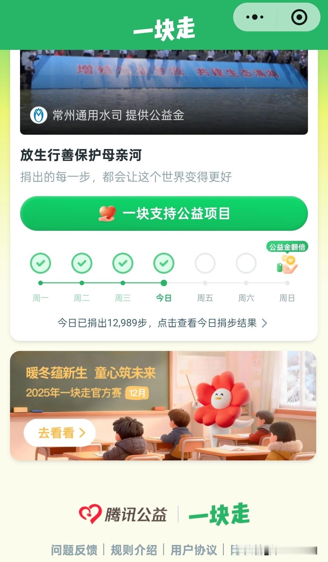 腾讯公益一块走,在微信搜索并进入 腾讯公益,小程序,在小程序首页找到 “一块走"