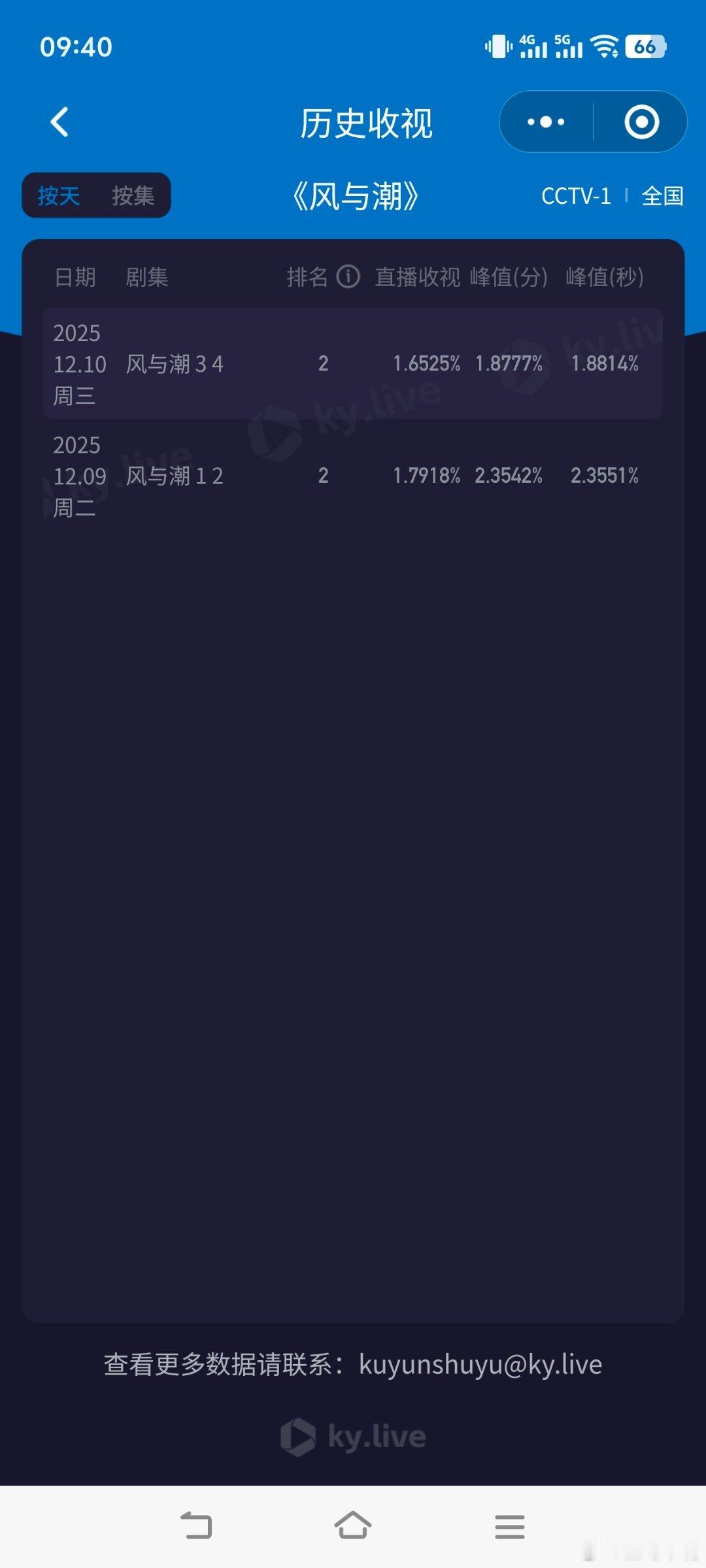 风与潮《风与潮》开播第二天酷云走势,第一集降了,但是第二集走势比首播日好多了!第二天平均1.6525,cvb估值:1.6525×1.83=3.024