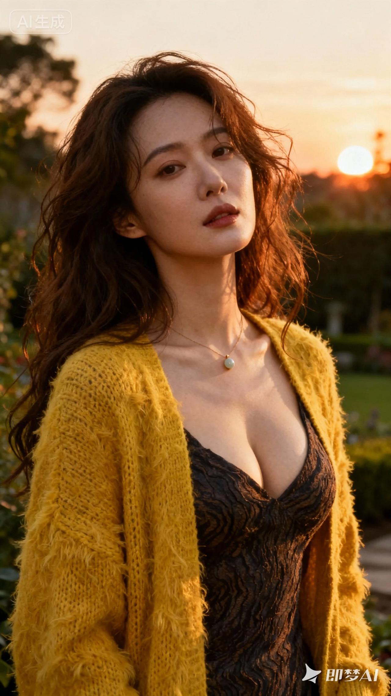 粉裙飘飘步轻盈,绿树掩映意自宁。