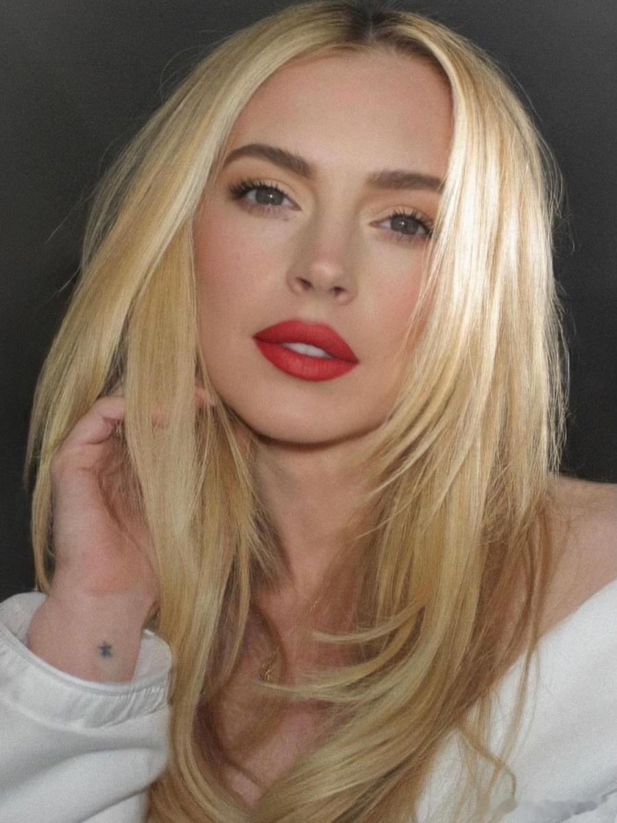 Lindsay Lohan林赛罗韩分享新妆造细节和造型,用红唇和亮片营造节日氛围