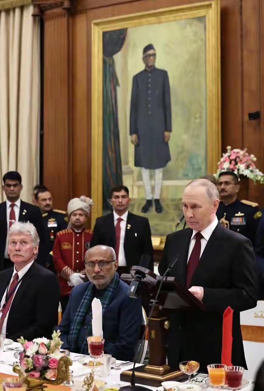 普京访问印度肯定饿肚子了 印度国宴菜品看图的话,直接让人想到一个字“shi”,但他们司机不觉得啊。 这次大帝访问,三哥满心热忱款,国宴上重磅亮相的招牌菜,居然是东一摊西一摊的杂乱模样,黄的、红的,硬的、软的混一坨。 大帝抓起小叉子,皱眉看了半天,象征性吃了一小口就撤了。据说晚上就登机回家了,应该是肚子饿,回家自己弄个蛋炒饭吃了。