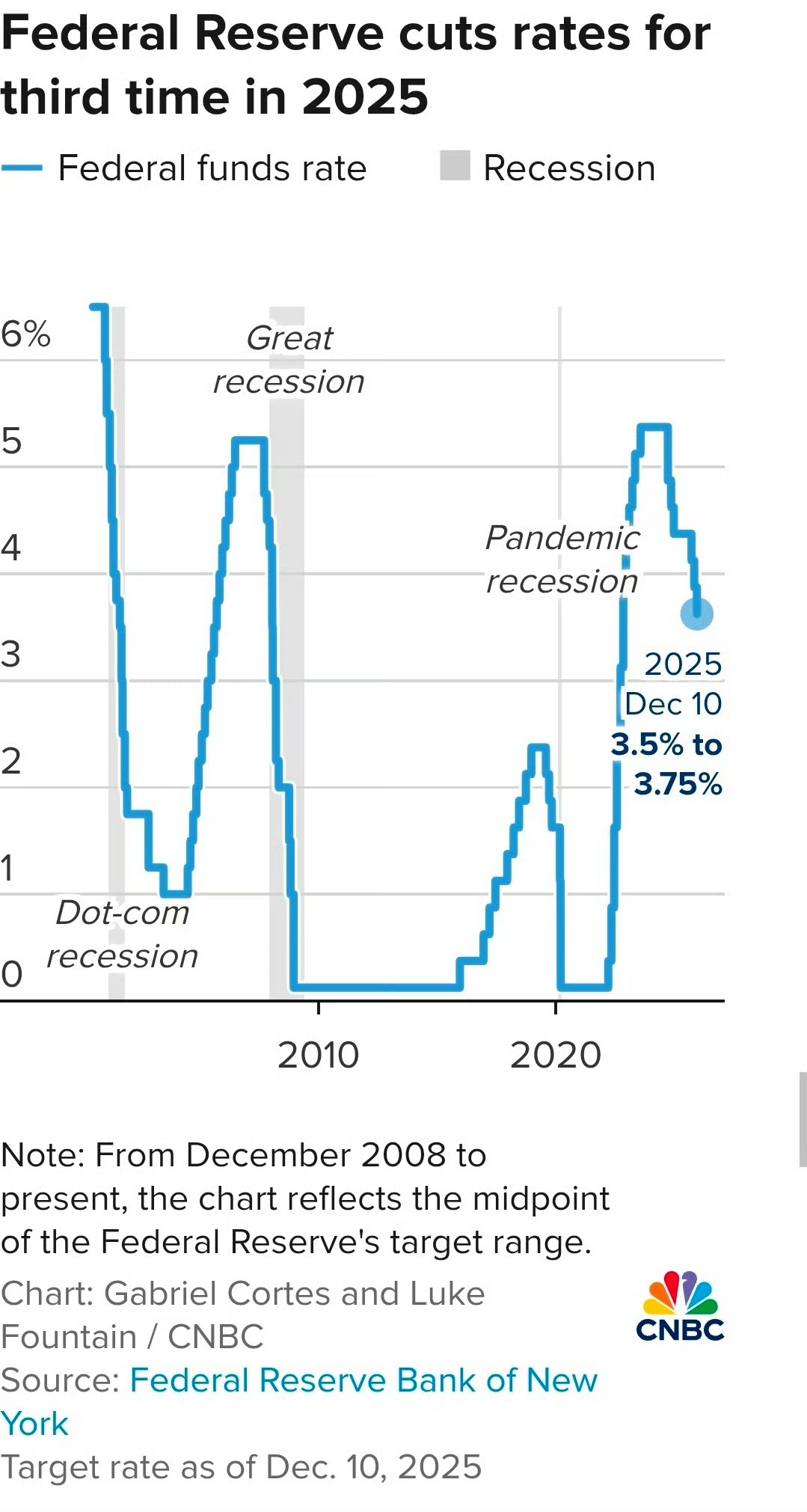 当地时间10日,美国联邦储备委员会结束为期两天的货币政策会议,宣布将联邦基金利率目标区间下调25个基点到3.50%至3.75%之间。这是美联储继今年第三次降息,也是自2024年9月以来第六次降息。除了利率决定外,美联储还宣布将恢复购买国债,将从周五开始购买400亿美元的国债。 美联储宣布降息25个基点特朗普嫌美联储降息幅度太小特朗普曾多次公开批评鲍威尔海外新鲜事热点现场